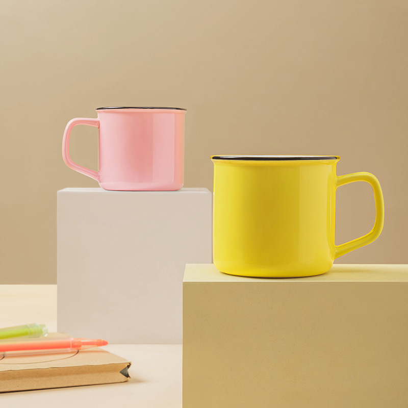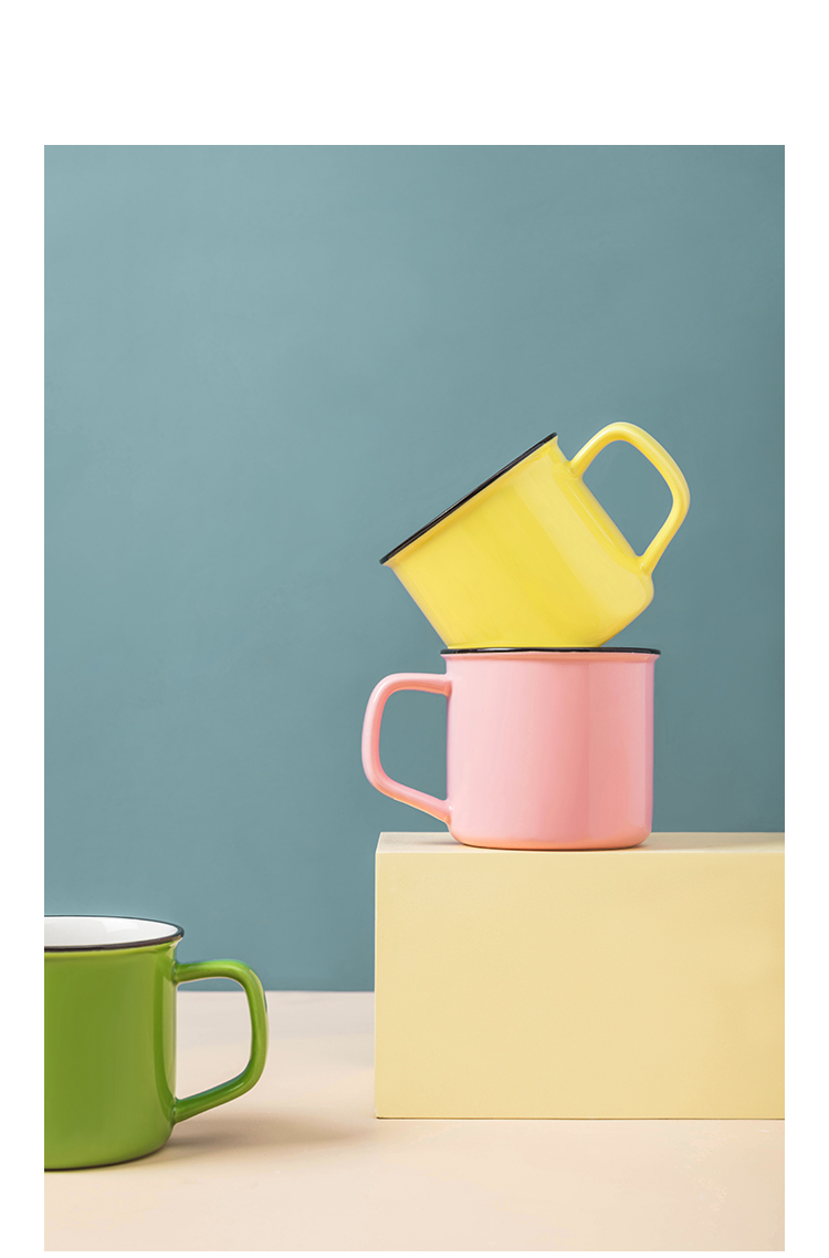 仿珐琅陶瓷马克杯 办公室水杯 家用咖啡杯定制
