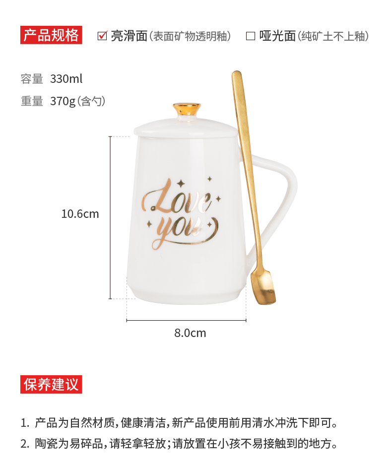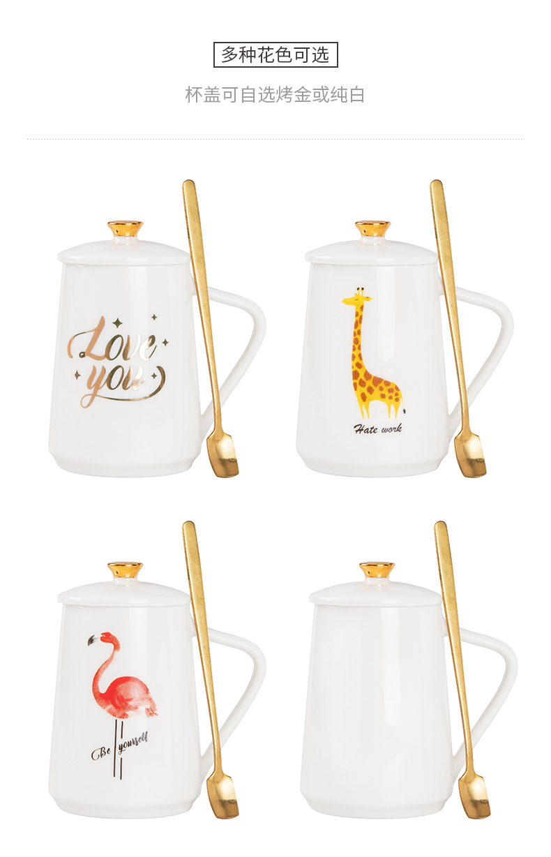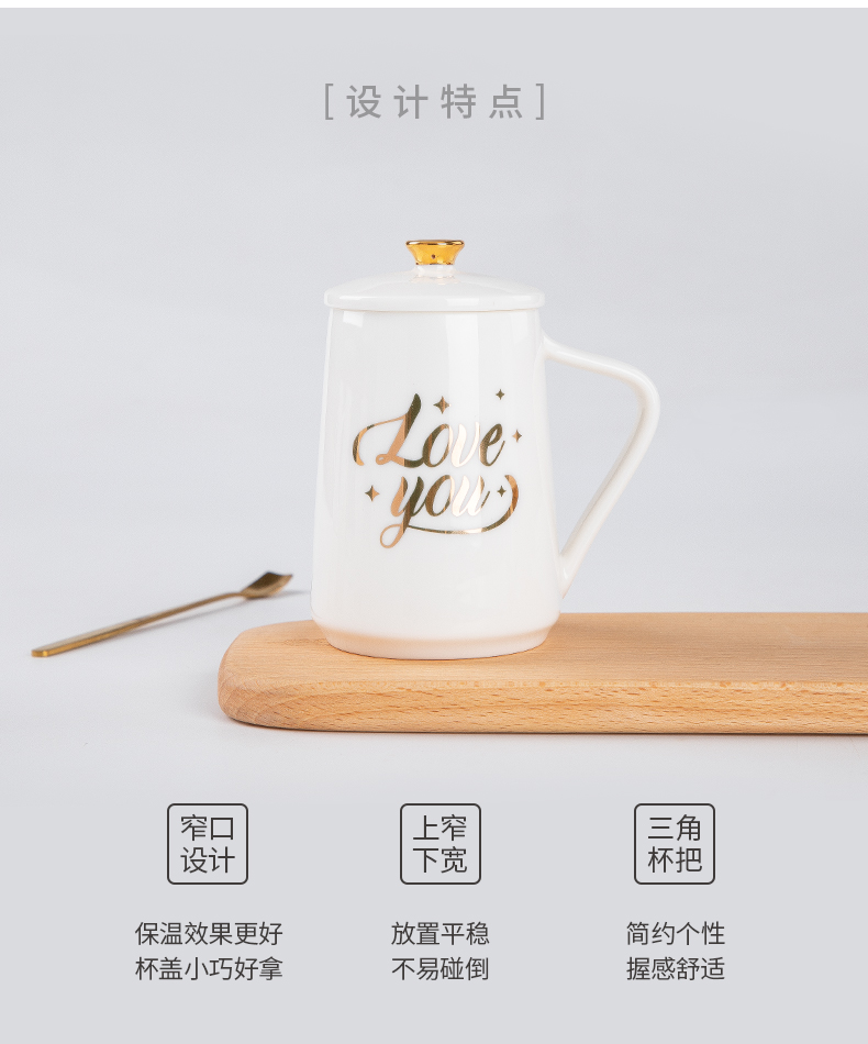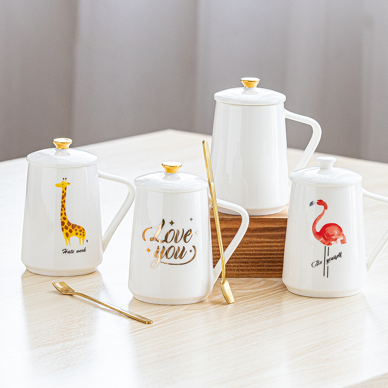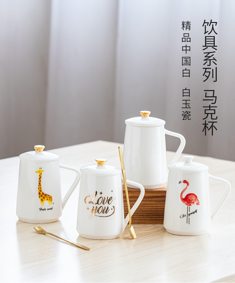 马克杯带盖勺 陶瓷杯女家用办公泡茶杯 白瓷北欧式早餐创意水杯定制
