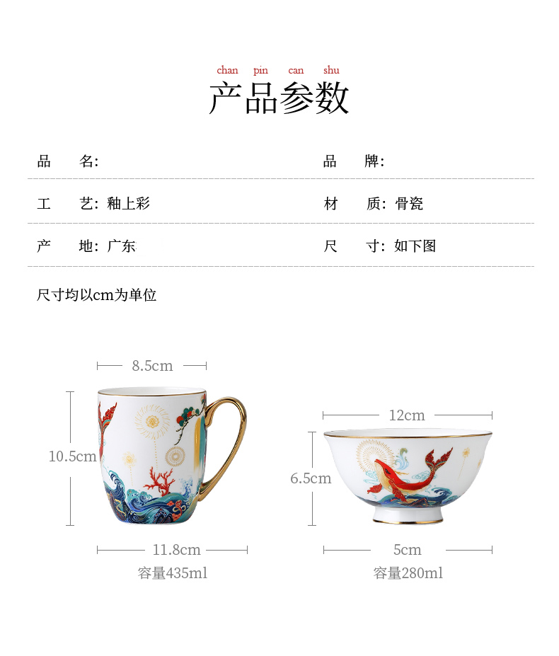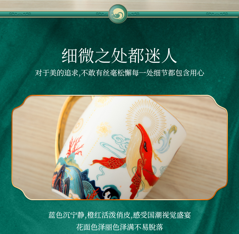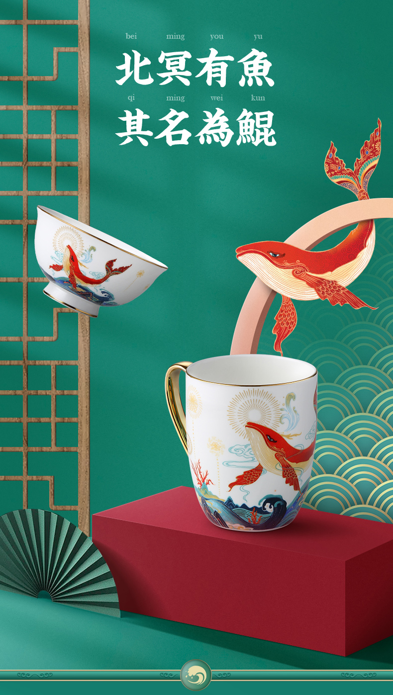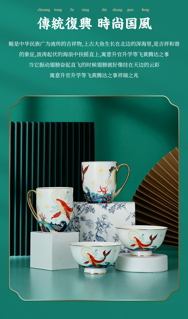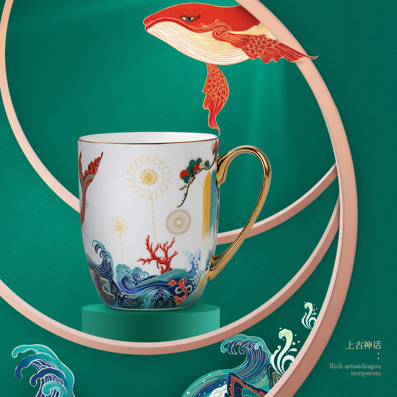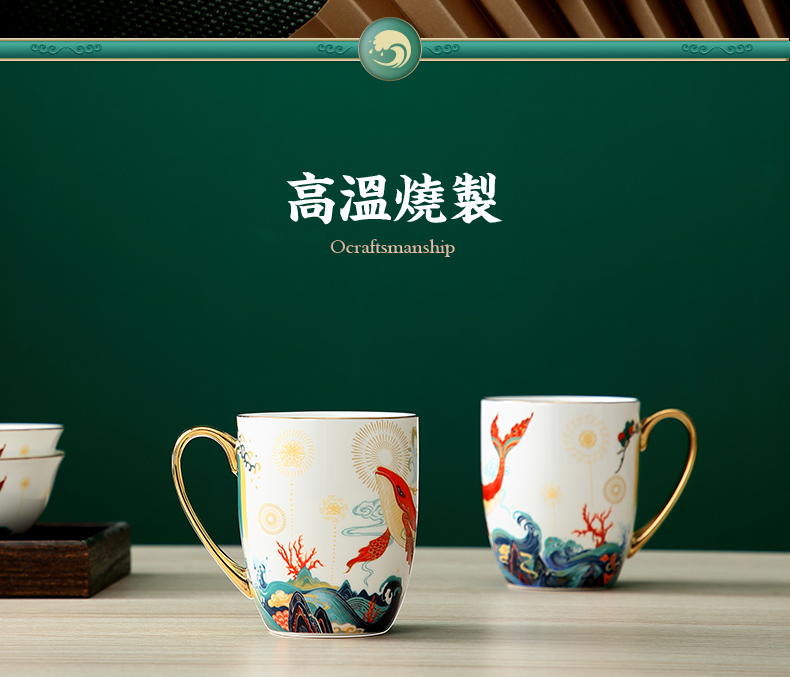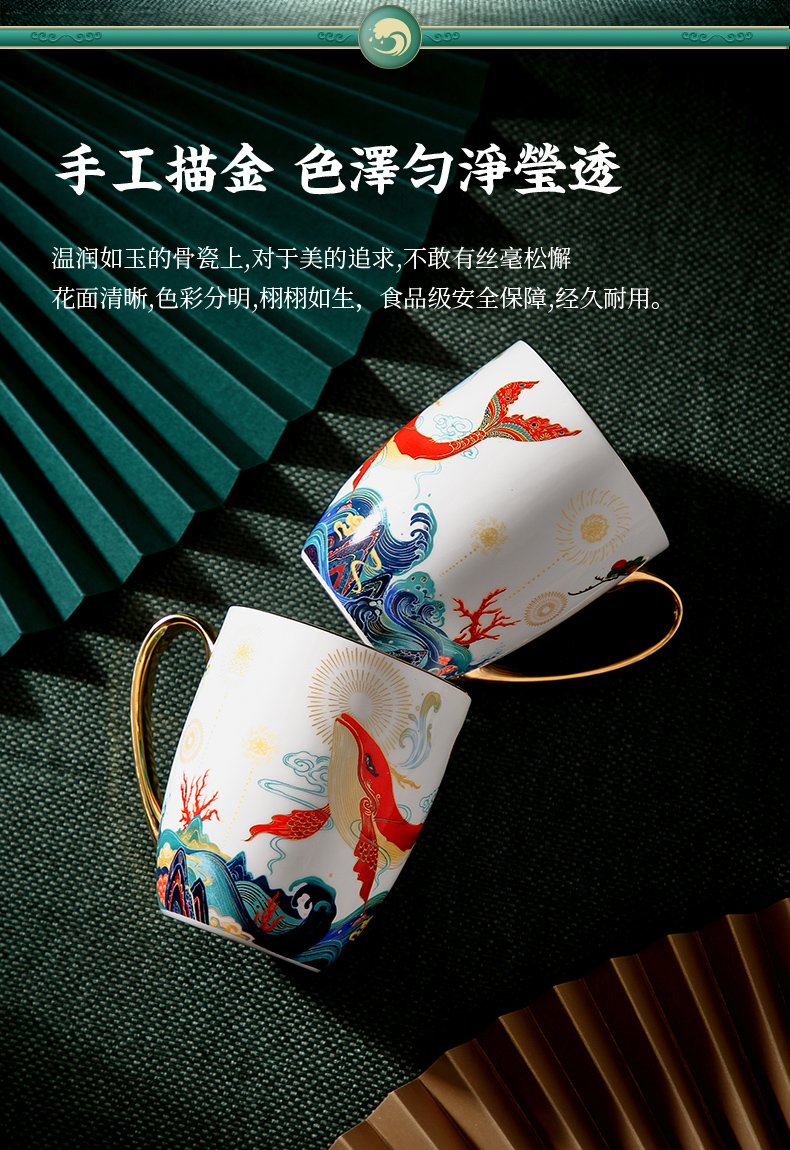 骨瓷马克杯家用 早餐陶瓷水杯 中国风漫画大鱼卡通牛奶杯定制
