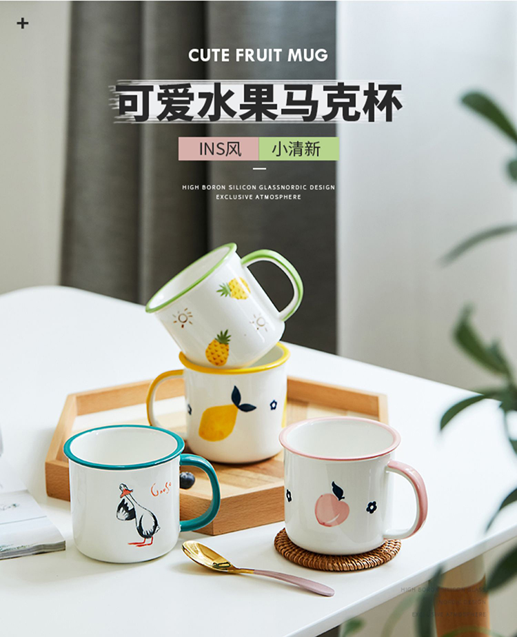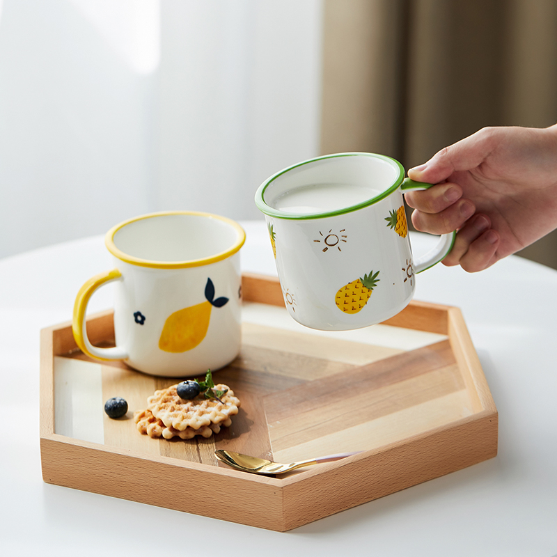 水果仿搪瓷杯 喝水杯 家用可爱日式牛奶杯定制
