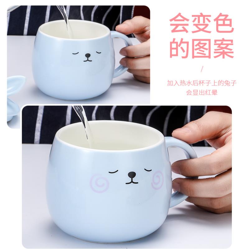 创意杯子加热变害羞表情卡通变色水杯 马克杯带盖陶瓷杯定制