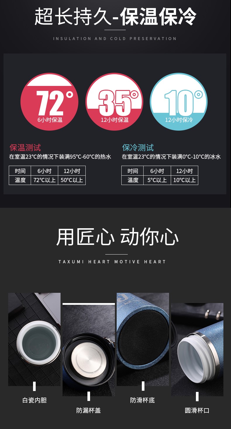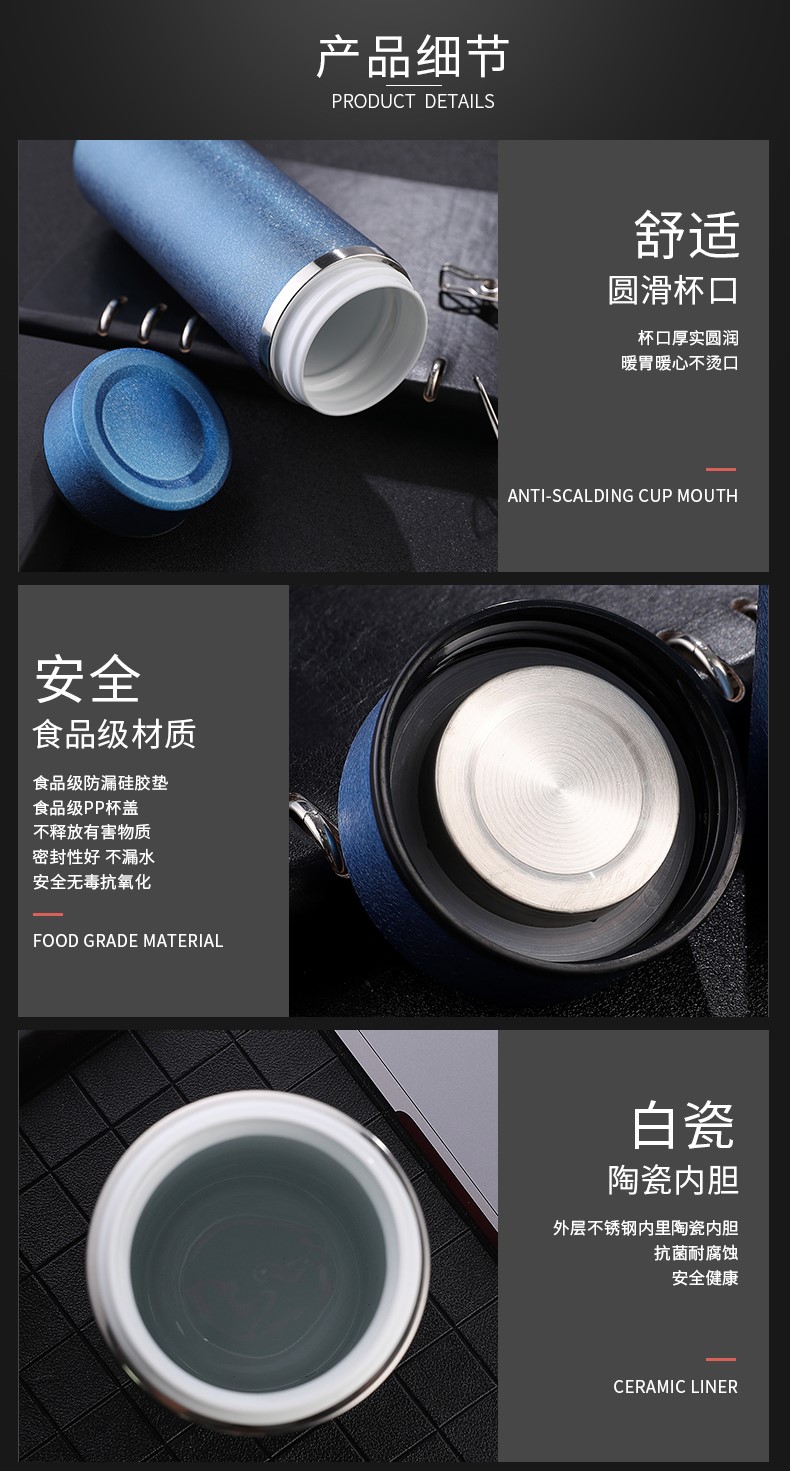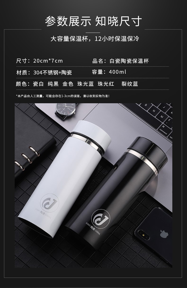 陶瓷保温杯 便携商务礼品杯 不锈钢外壳内胆骨瓷杯双层杯定制