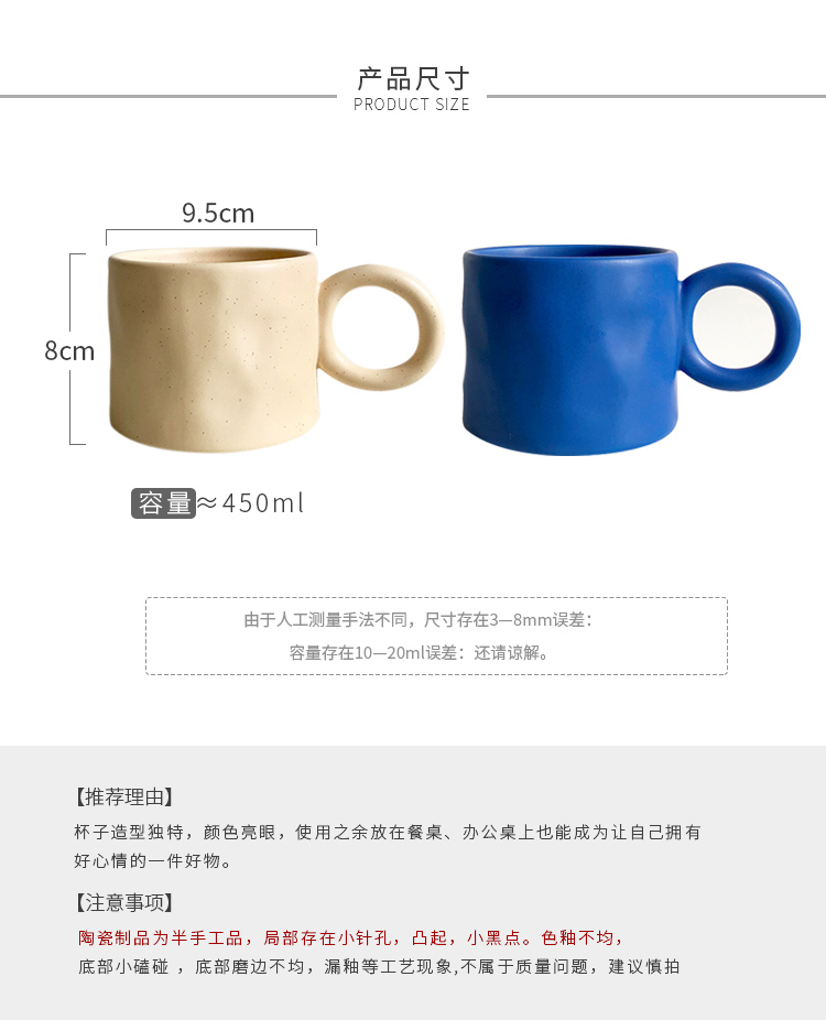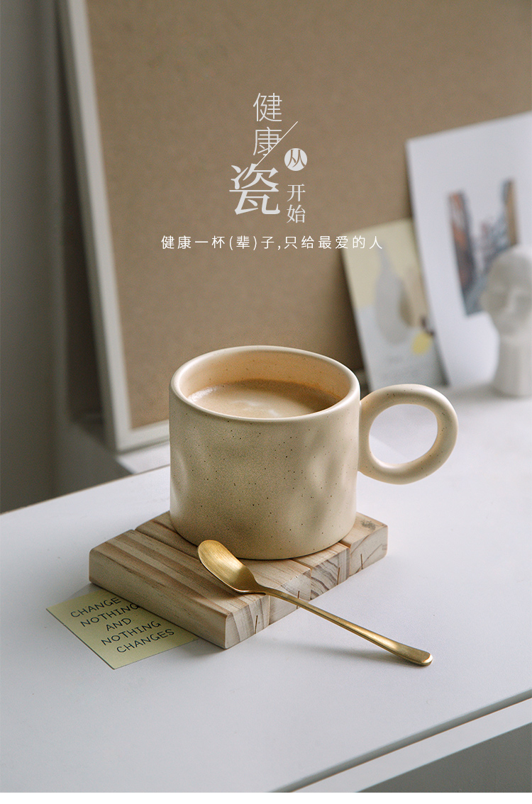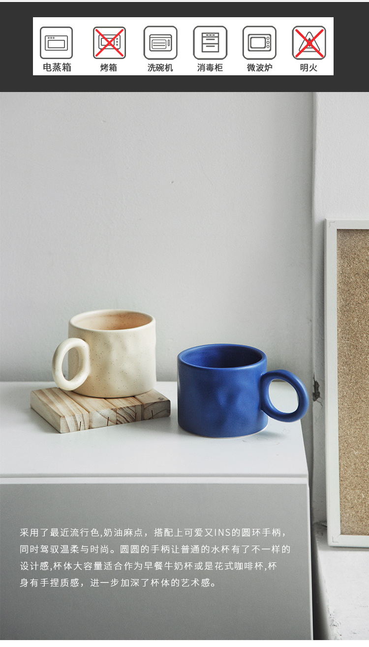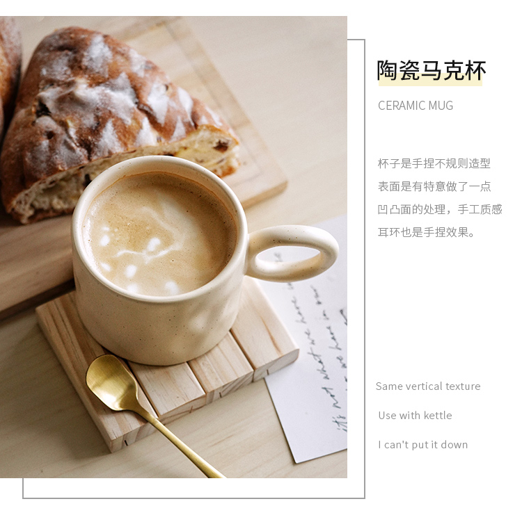 ins不规则大耳环陶瓷马克杯 奶油麻麻色杯定制