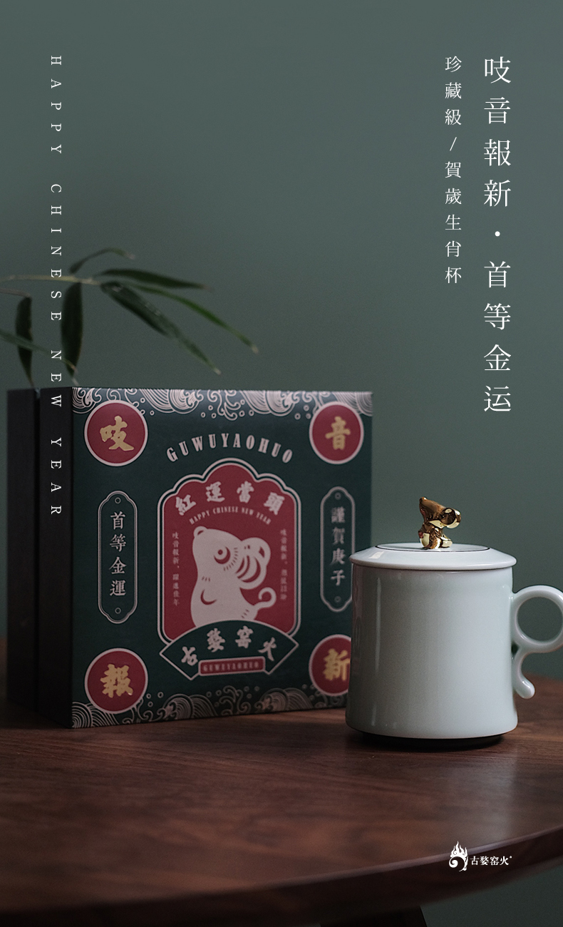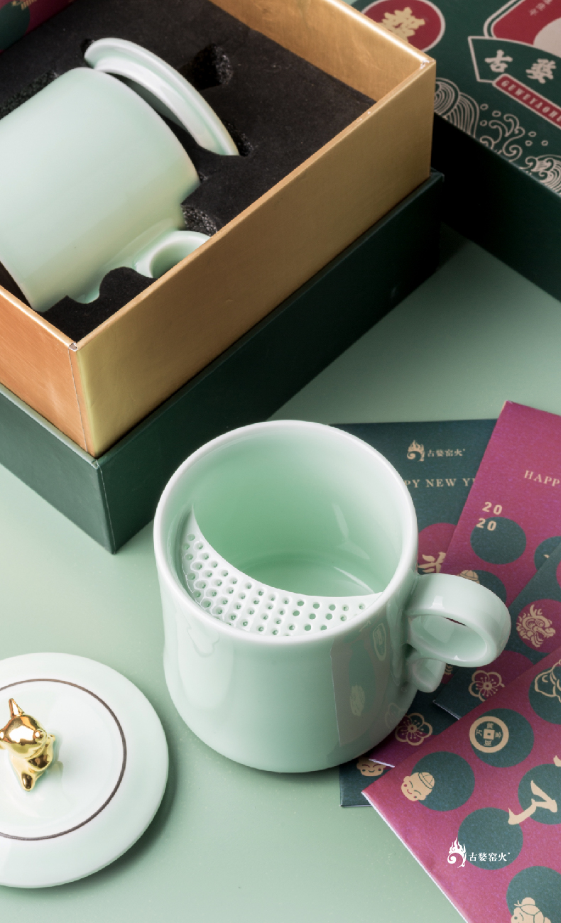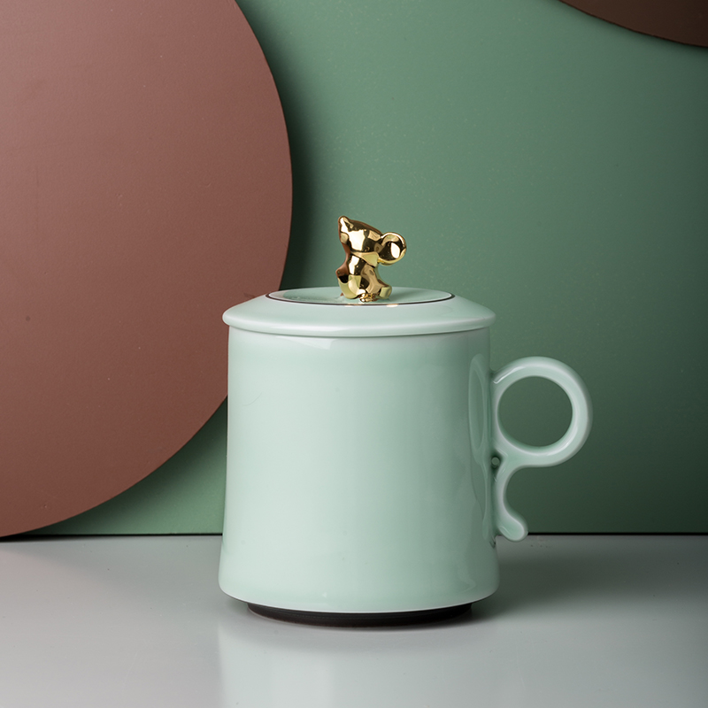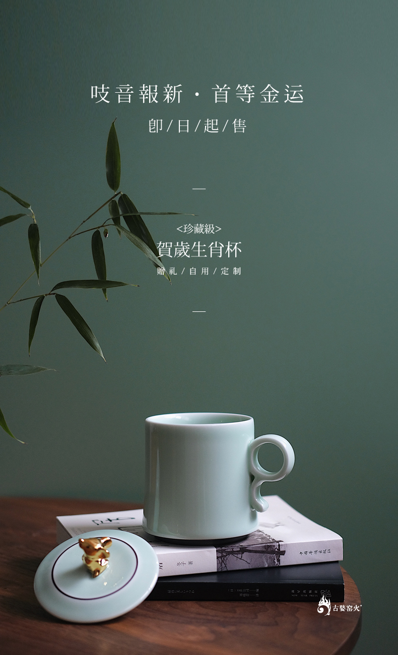 古婺窑火陶瓷马克杯 带盖办公家用男女士高档茶杯 鼠年礼物私人定制