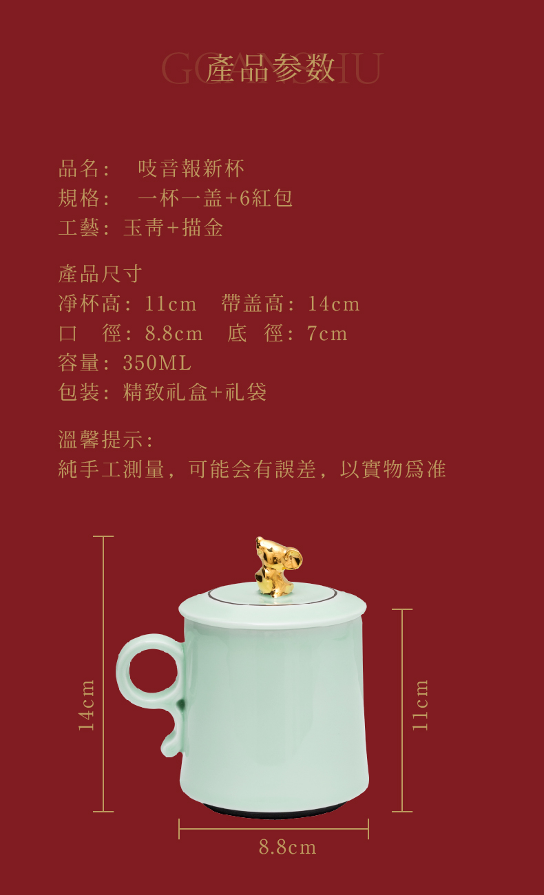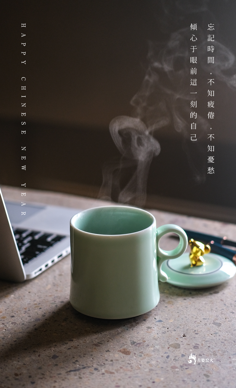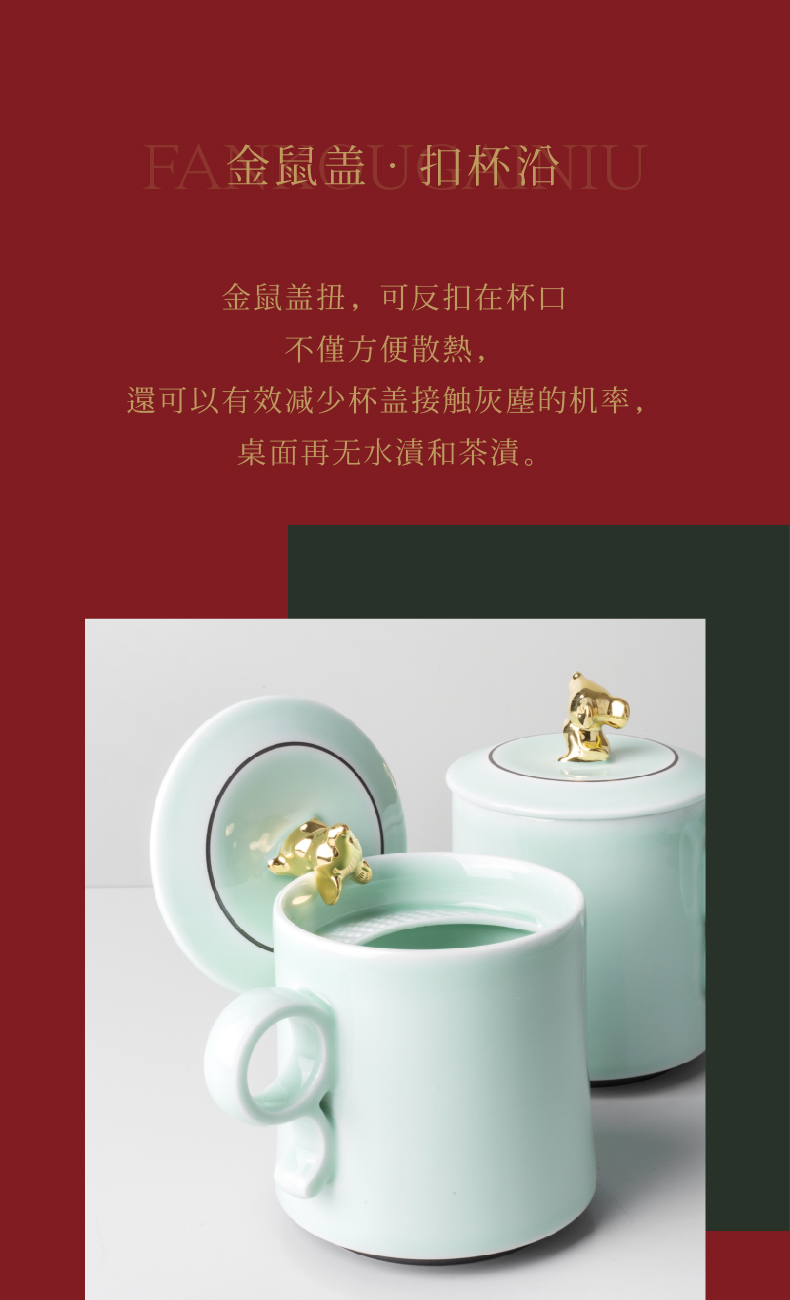 古婺窑火陶瓷马克杯 带盖办公家用男女士高档茶杯 鼠年礼物私人定制