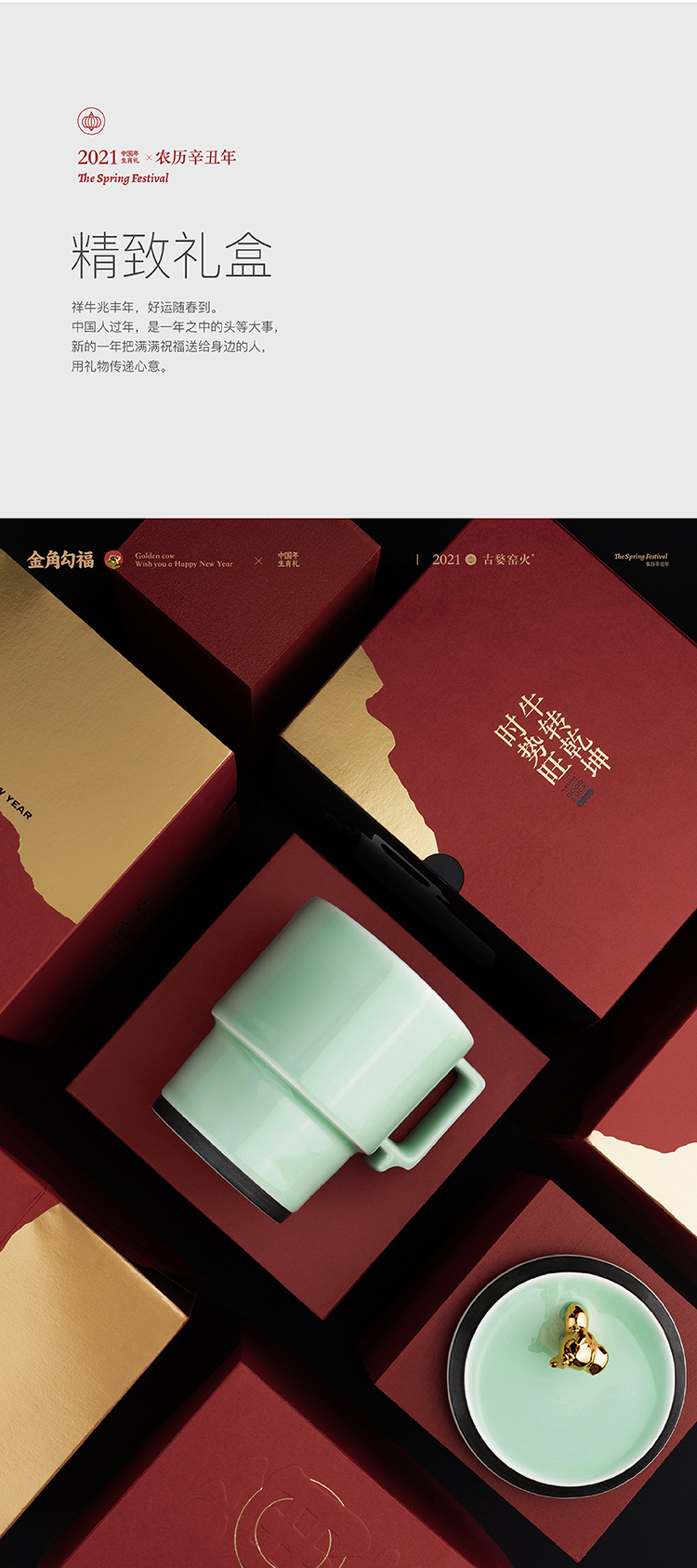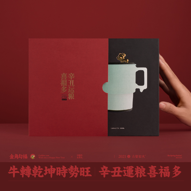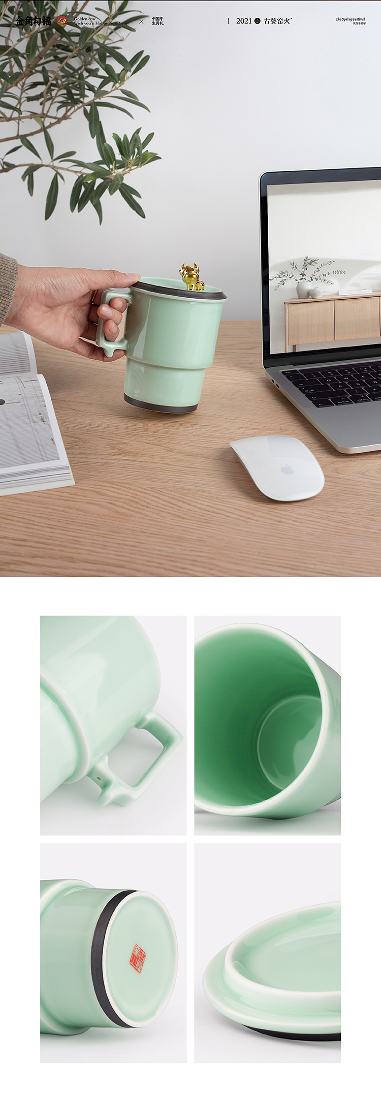 古婺窑火陶瓷杯子带盖马克杯 办公水杯男本命年礼物女属牛年礼盒装