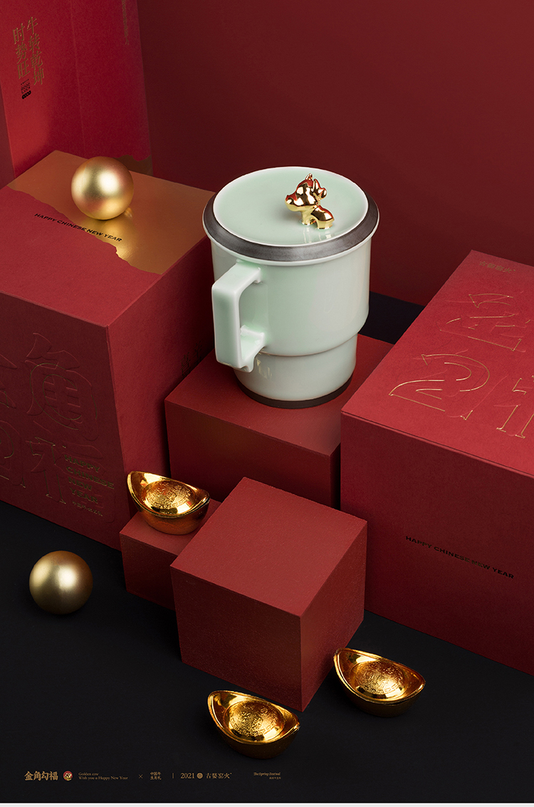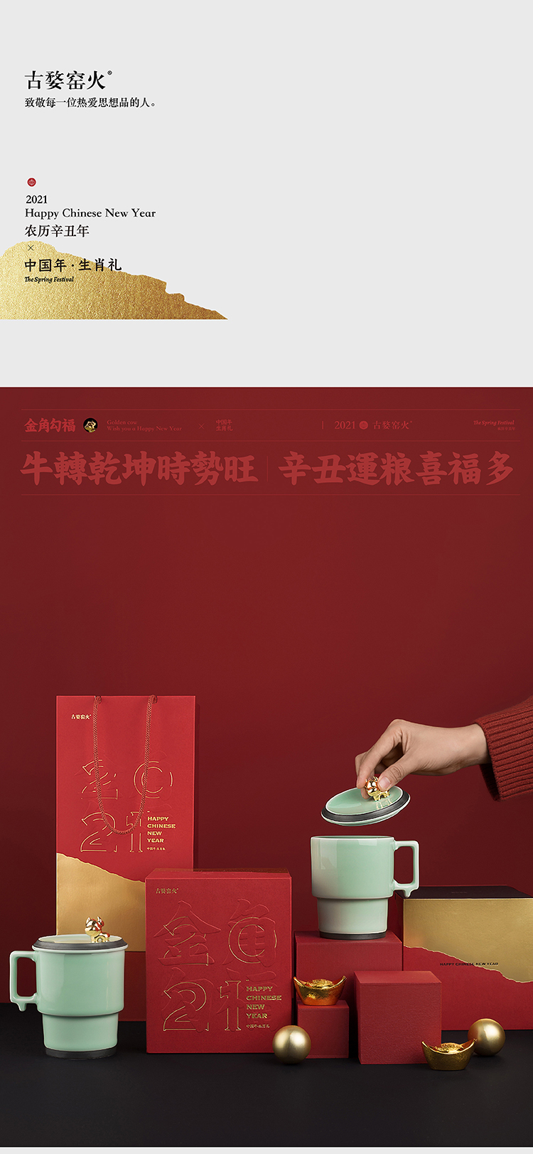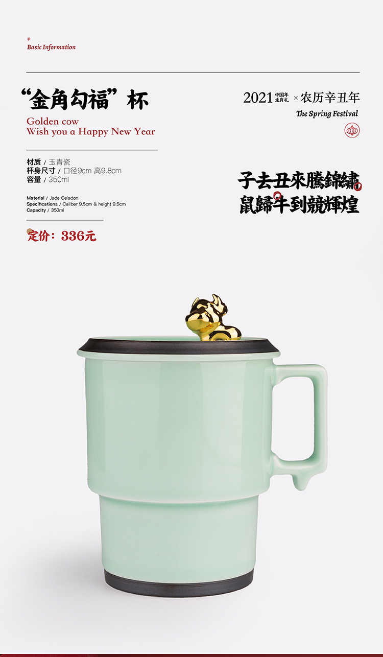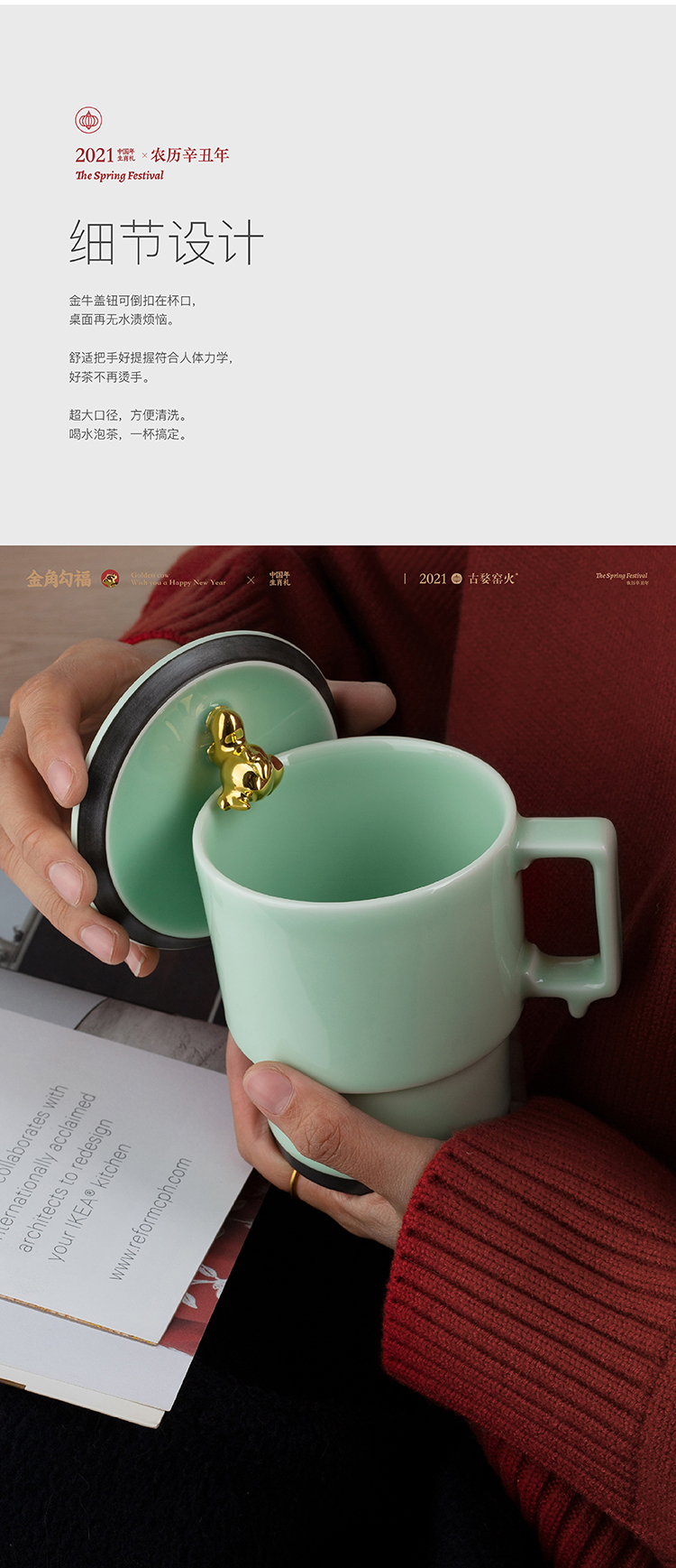古婺窑火陶瓷杯子带盖马克杯 办公水杯男本命年礼物女属牛年礼盒装
