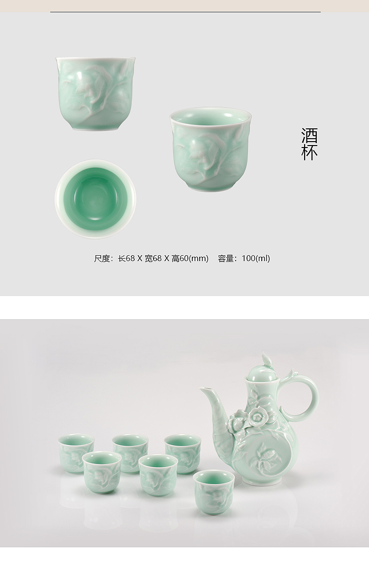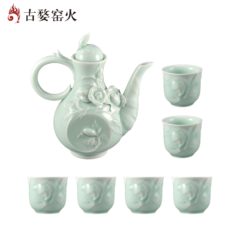 古婺窑火酒具套装 中式仿古烈酒黄酒白酒杯陶瓷酒壶家用锦上添花