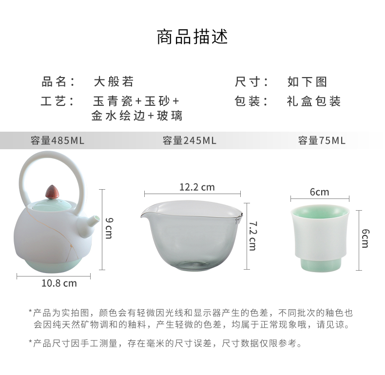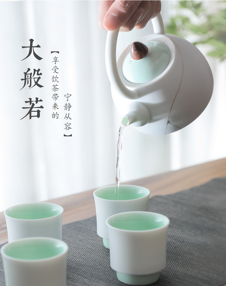 古婺窑火玉青瓷功夫茶具套装 家用茶壶茶杯大般若喝茶客厅泡茶器