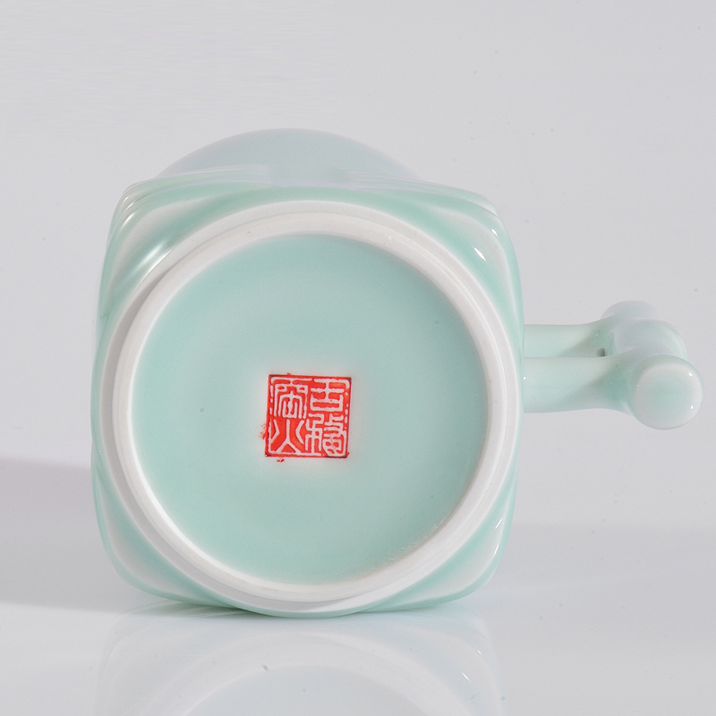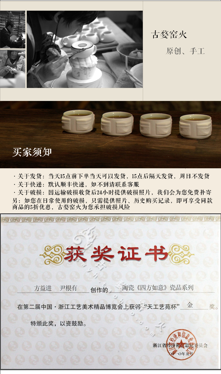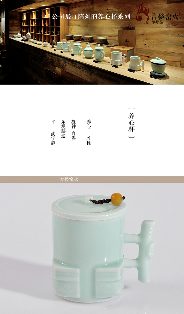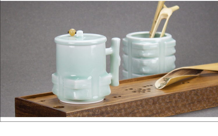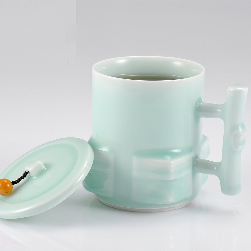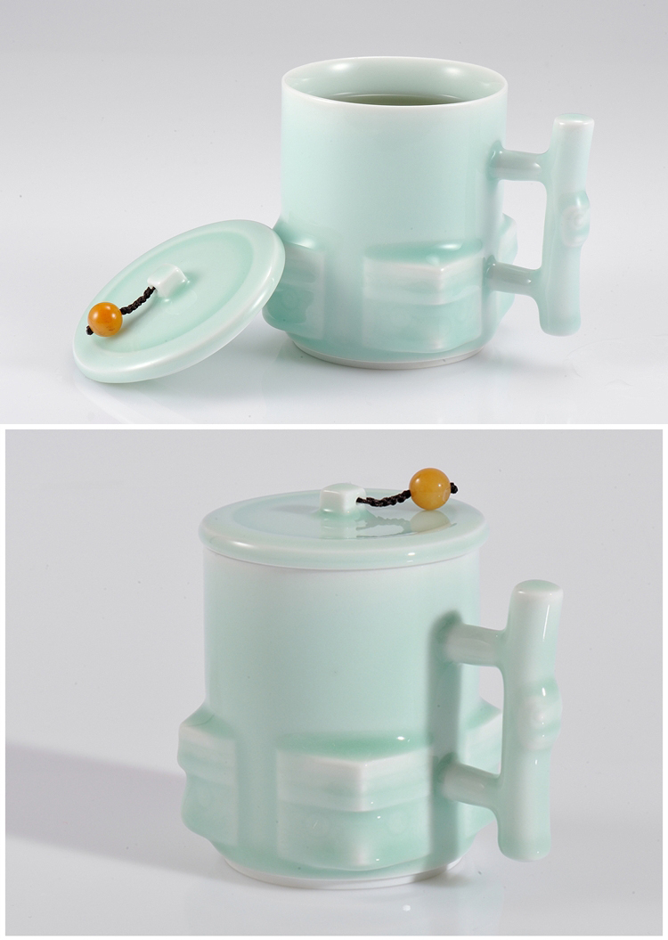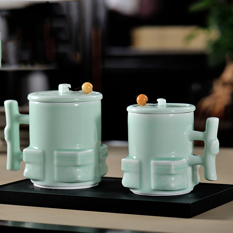 古婺窑火玉青瓷功夫茶具 陶瓷茶杯礼盒包装 家用简约带盖单杯大容量