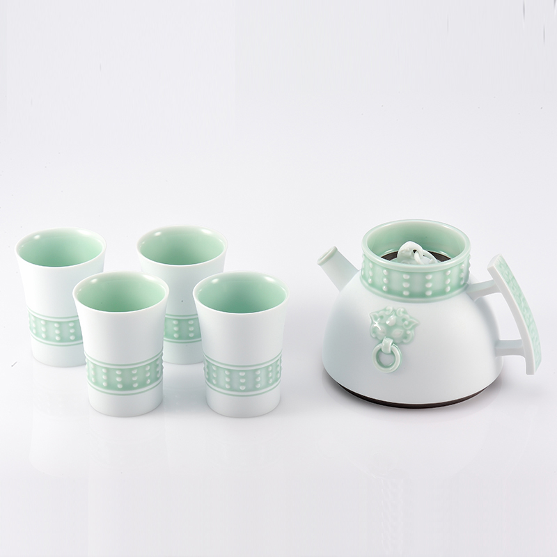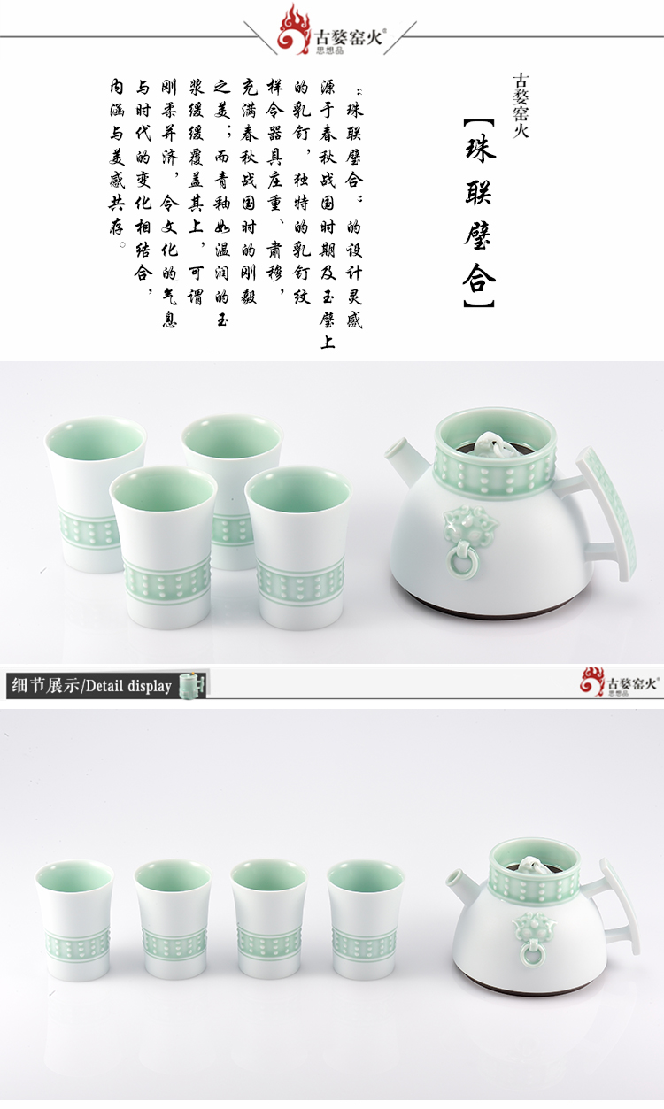 古婺窑火青瓷陶瓷茶具 一壶四杯办公室会客功夫茶具套装送礼物盒装