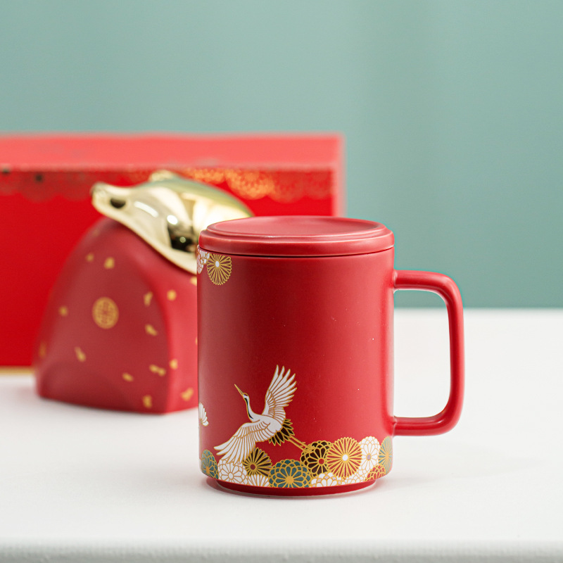 兰台和风仙鹤杯单杯 牛年茶叶罐办公杯主人杯