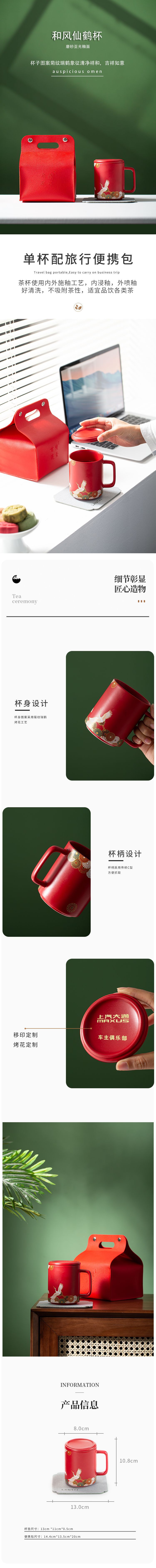 兰台和风仙鹤杯单杯 便携款便携包办公杯主人杯