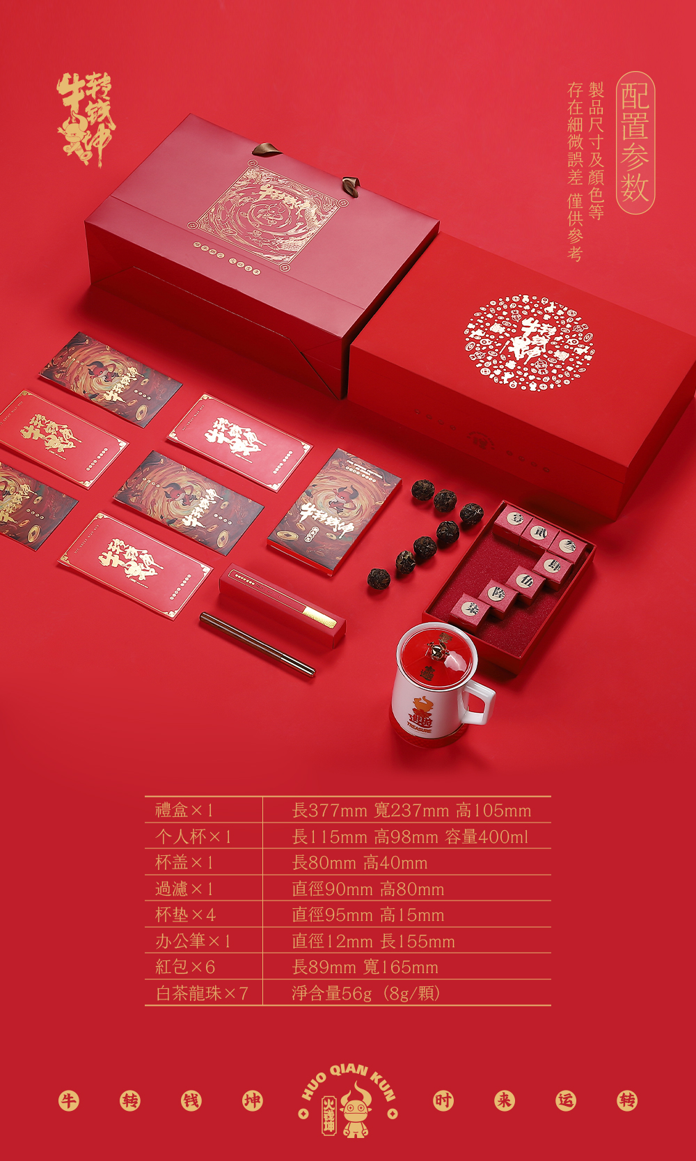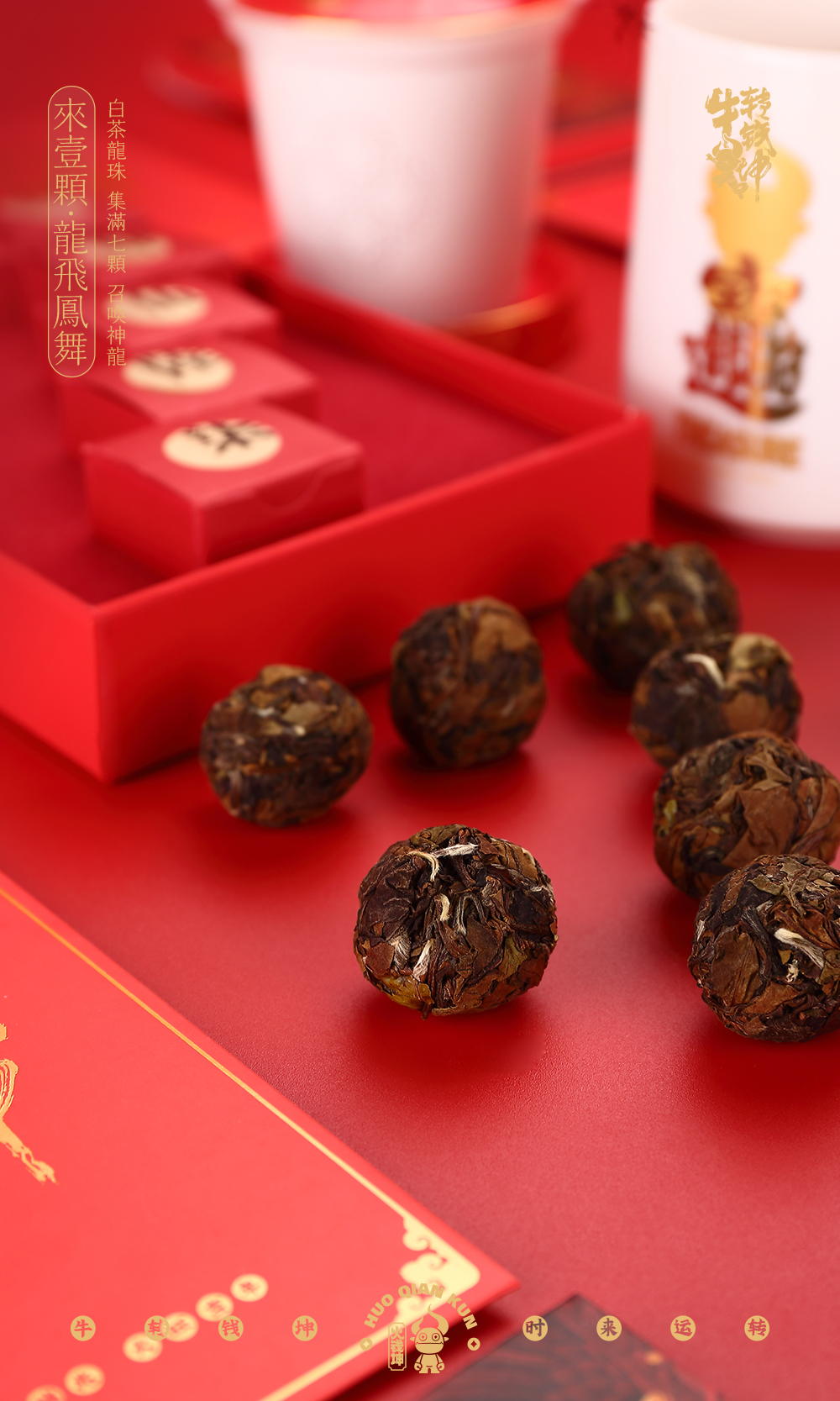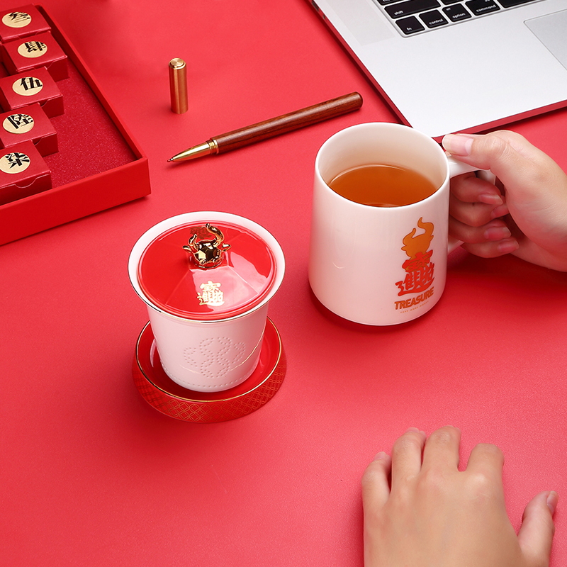 牛转乾坤白瓷办公杯白茶龙珠茶套组礼盒牛年新春好礼