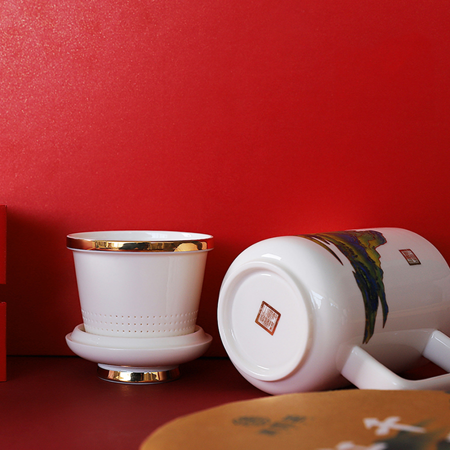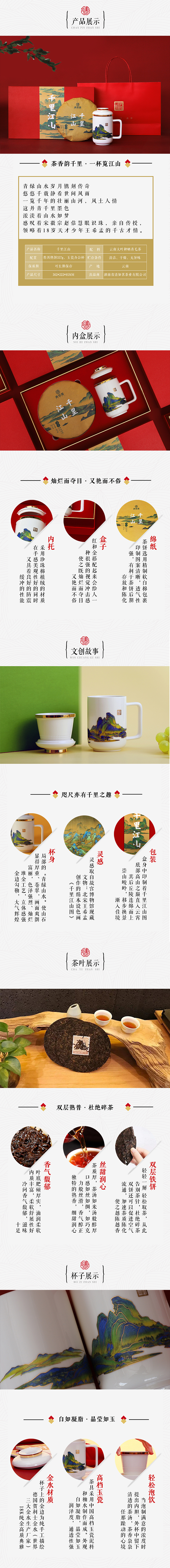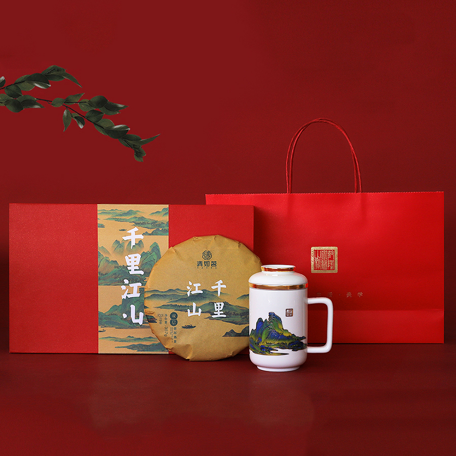 千里江山高温玉瓷领导杯古树春茶普洱熟茶双层铁饼礼盒