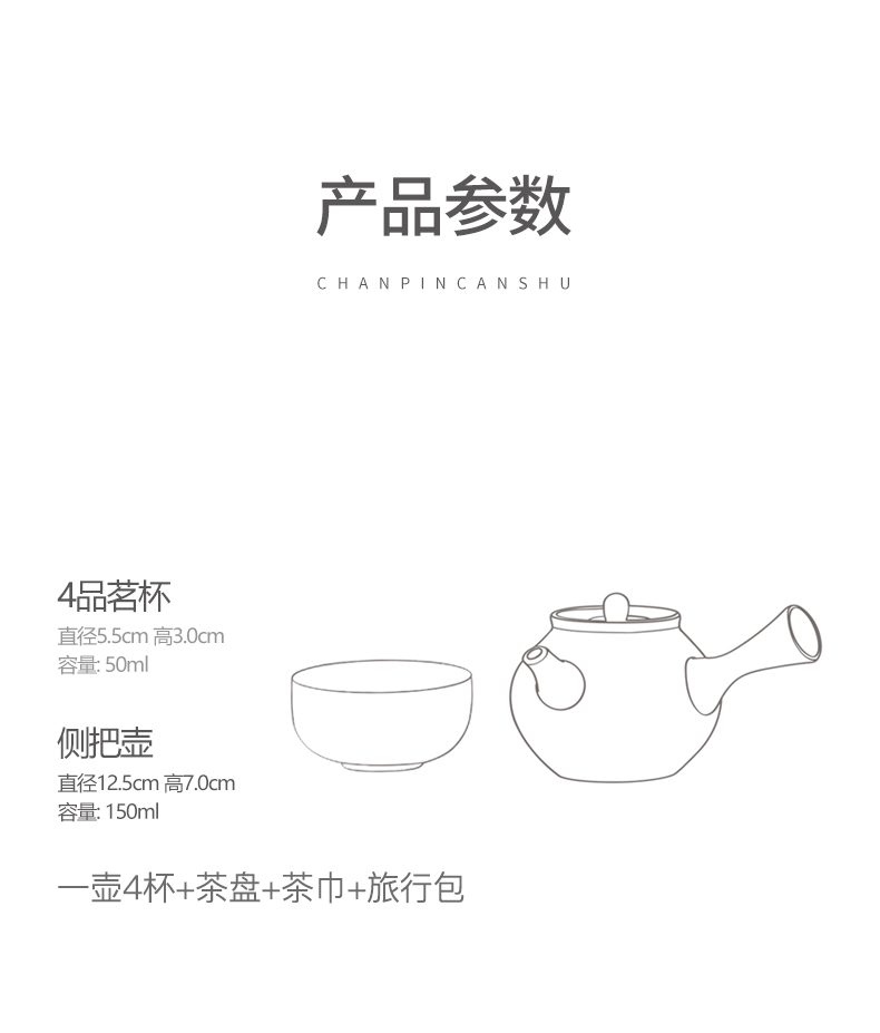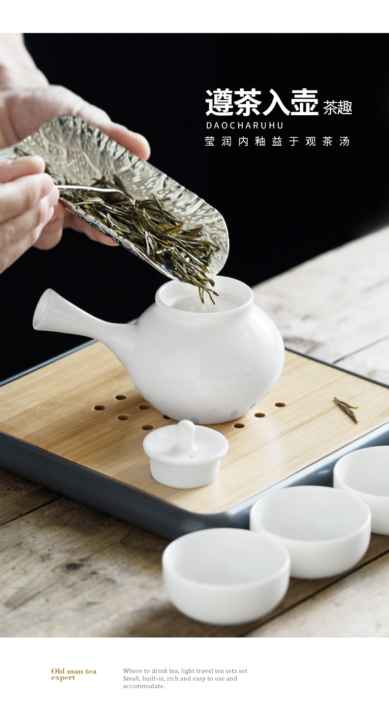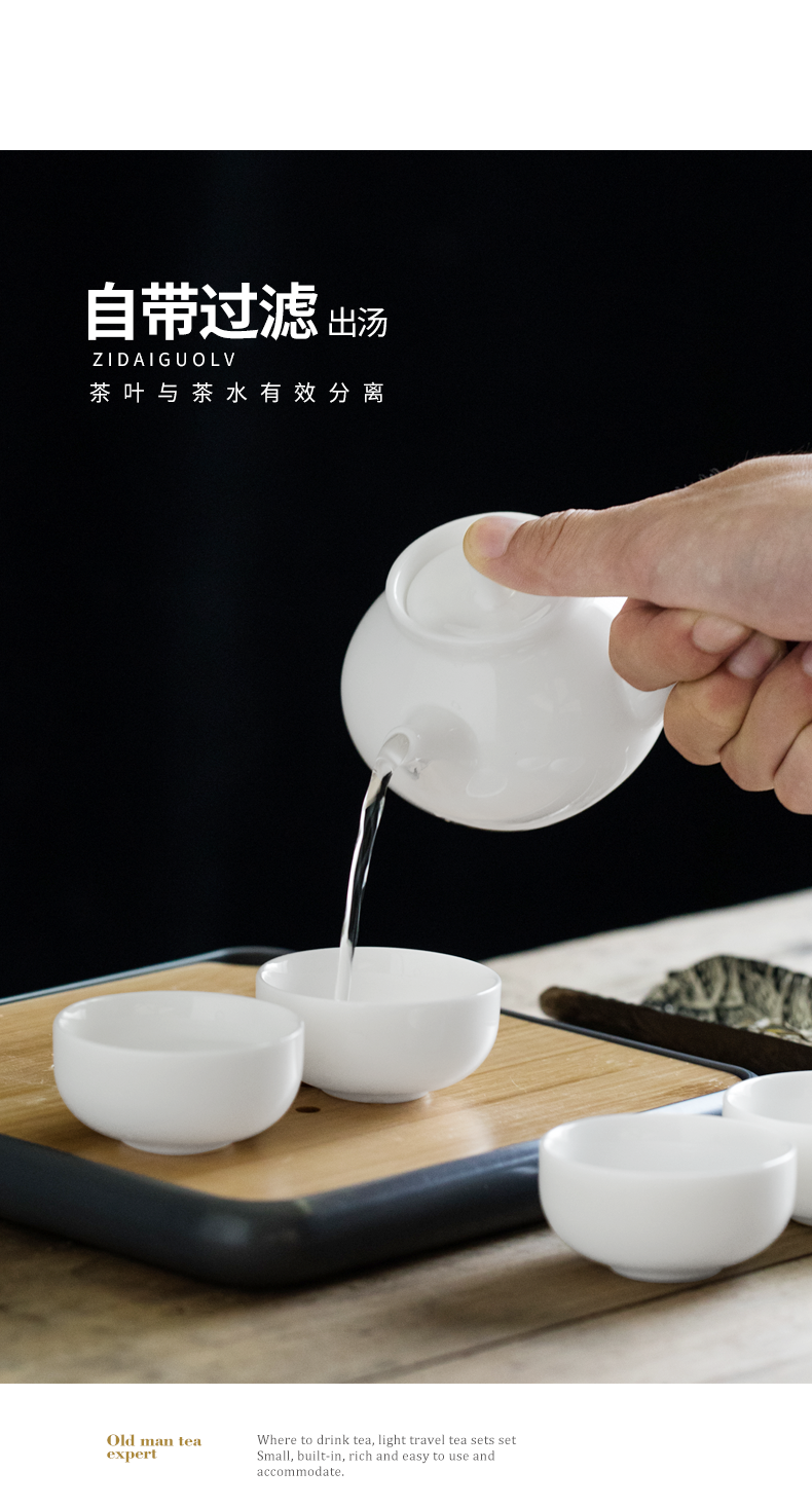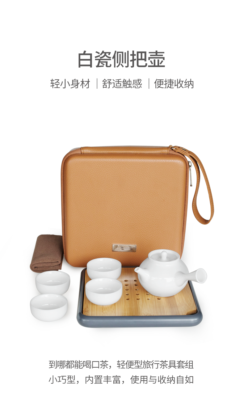 白瓷旅行茶具套装 一壶四杯便携快客杯 家用干泡茶盘台茶壶整套礼品送礼佳选