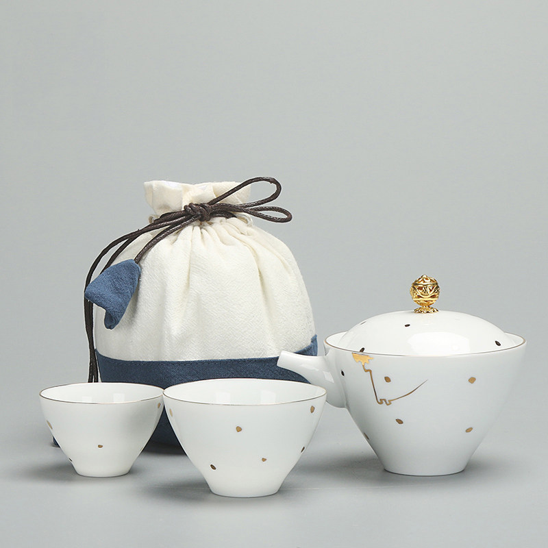 旅行功夫茶具套装 便携包式快客杯一壶二杯 户外泡茶壶陶瓷过滤茶杯