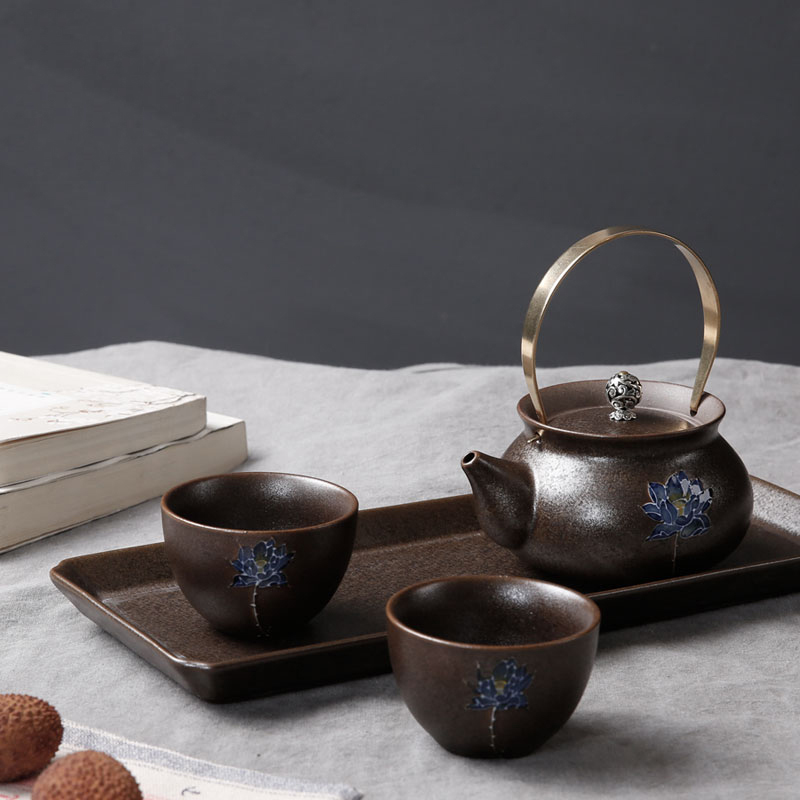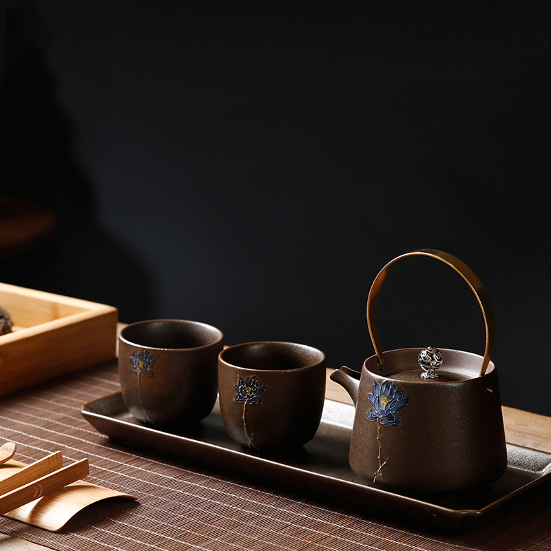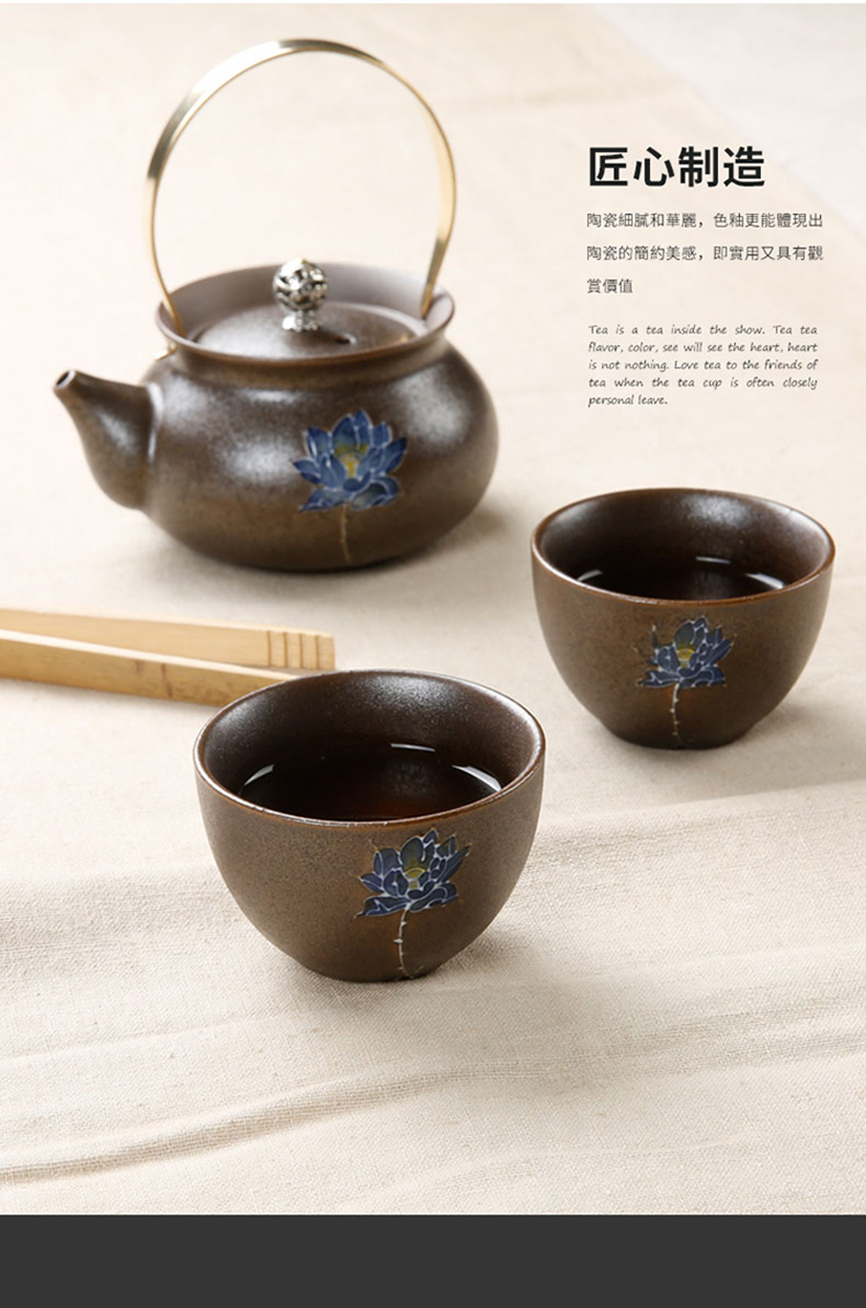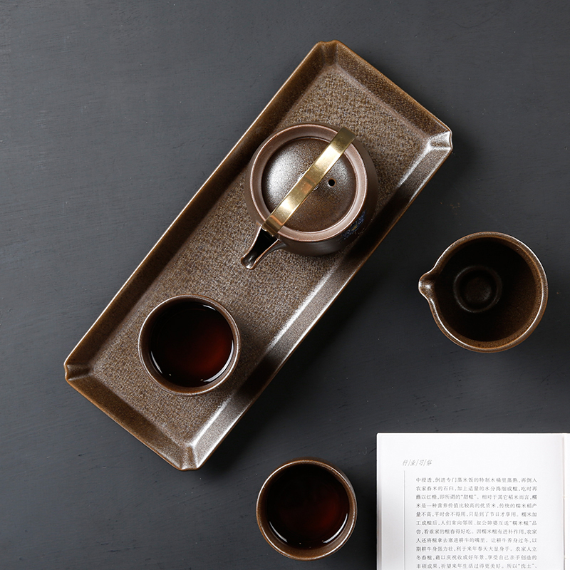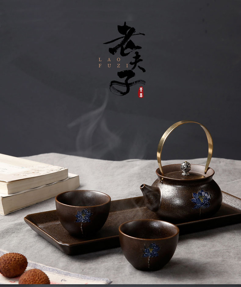 老夫子便携办公旅行茶具套装 陶瓷茶壶茶杯干泡盘快客杯户外车载礼品