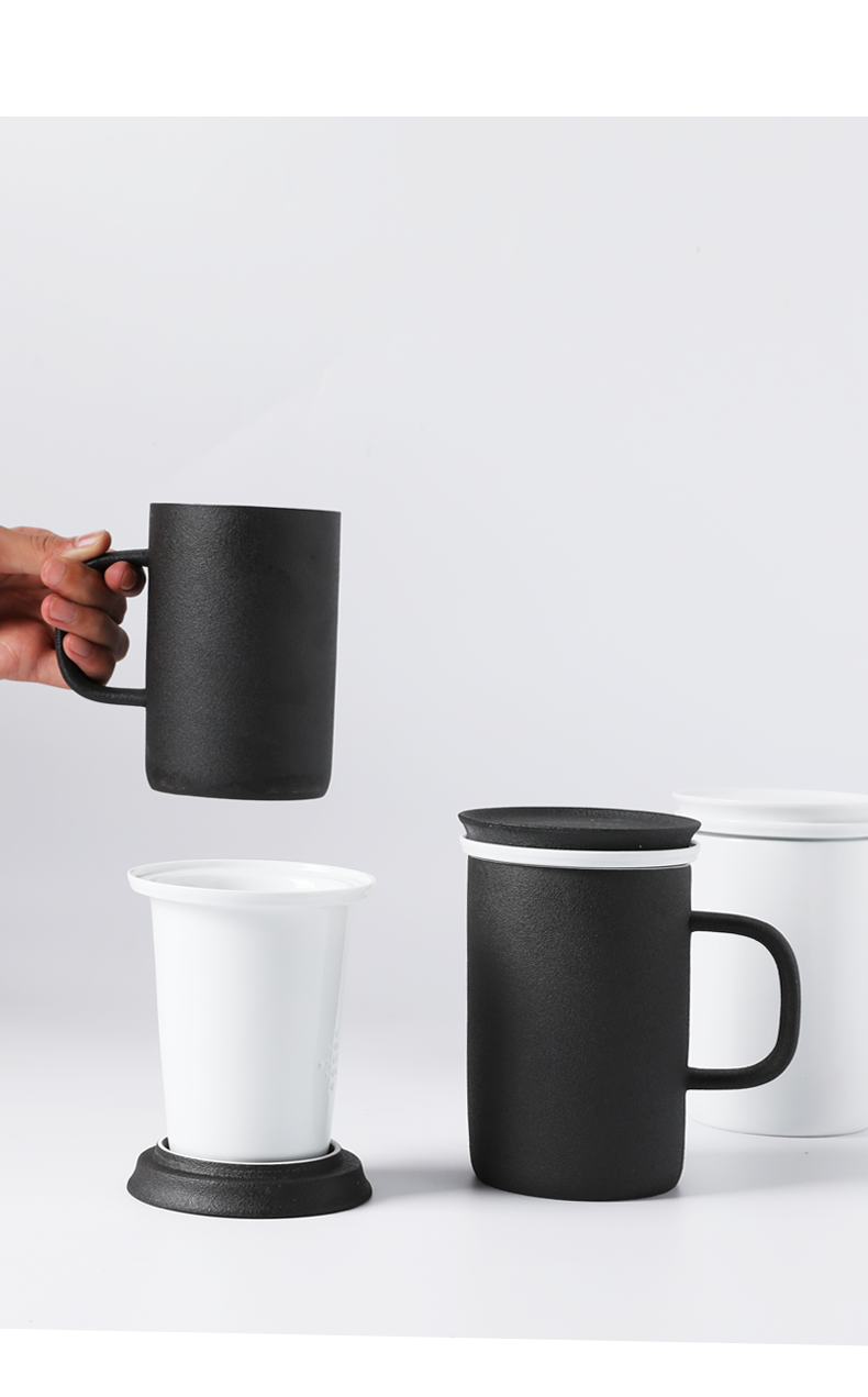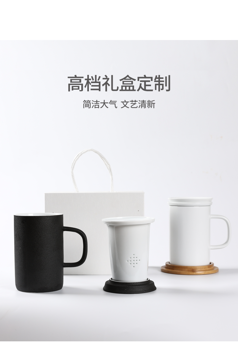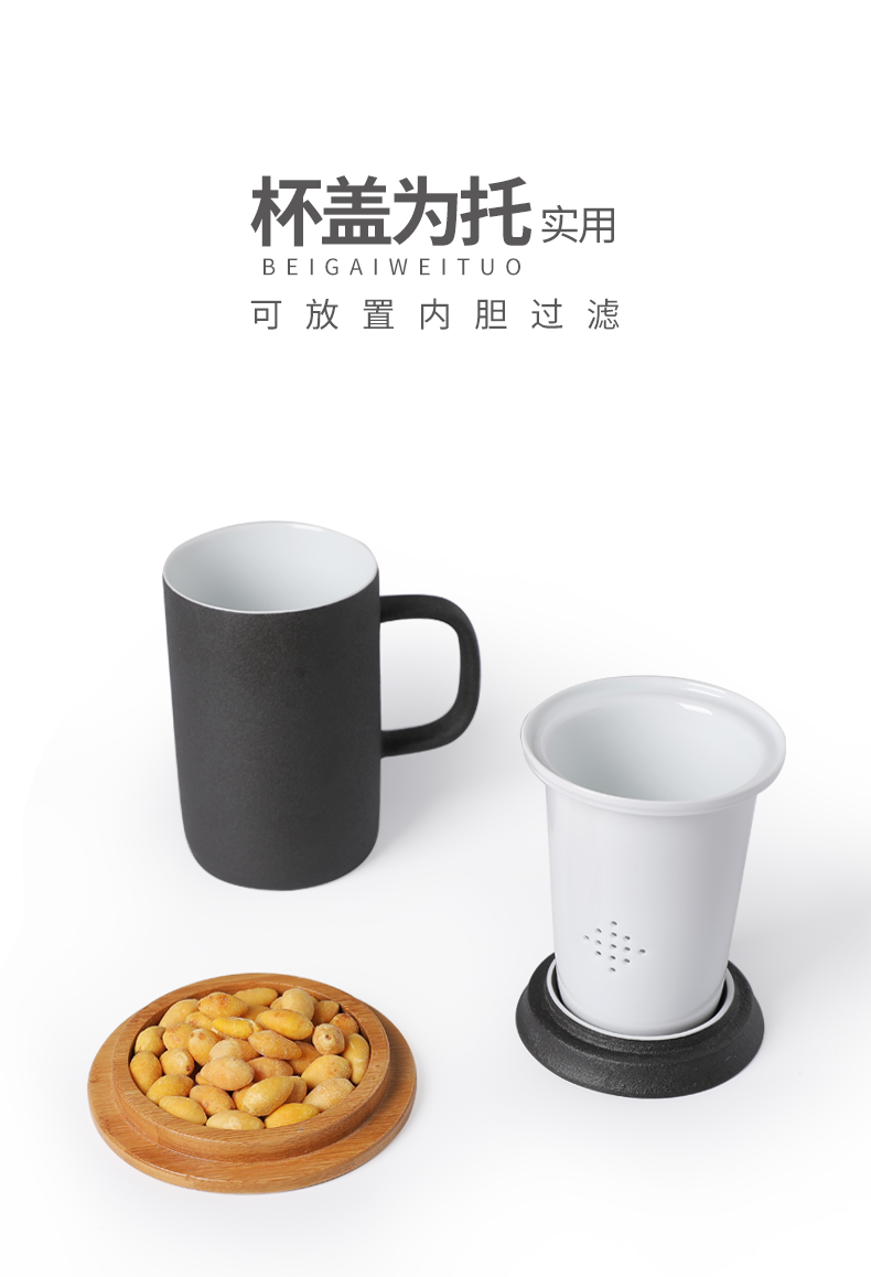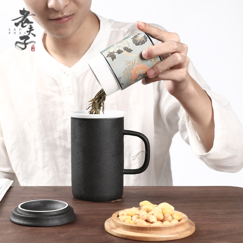 老夫子马克杯定制 带盖过滤杯垫茶杯家用陶瓷水杯 办公室泡茶杯子