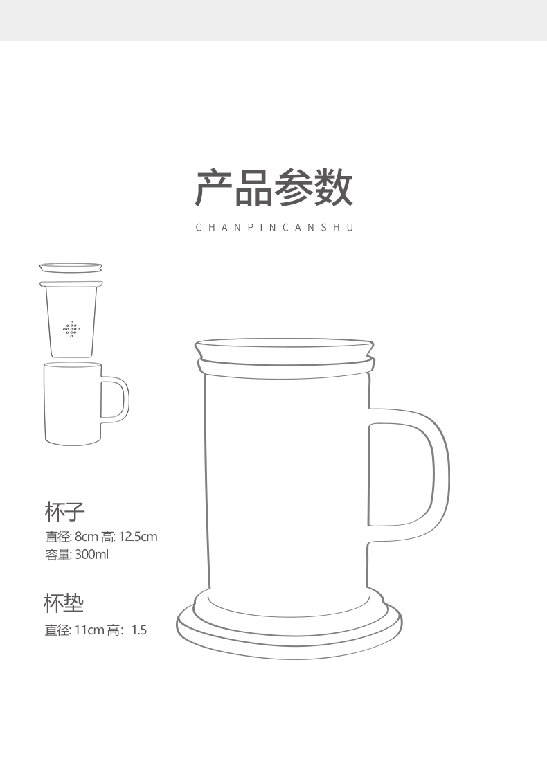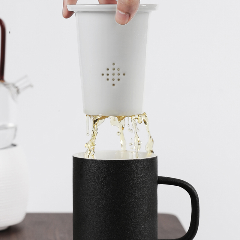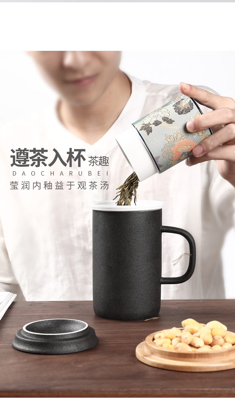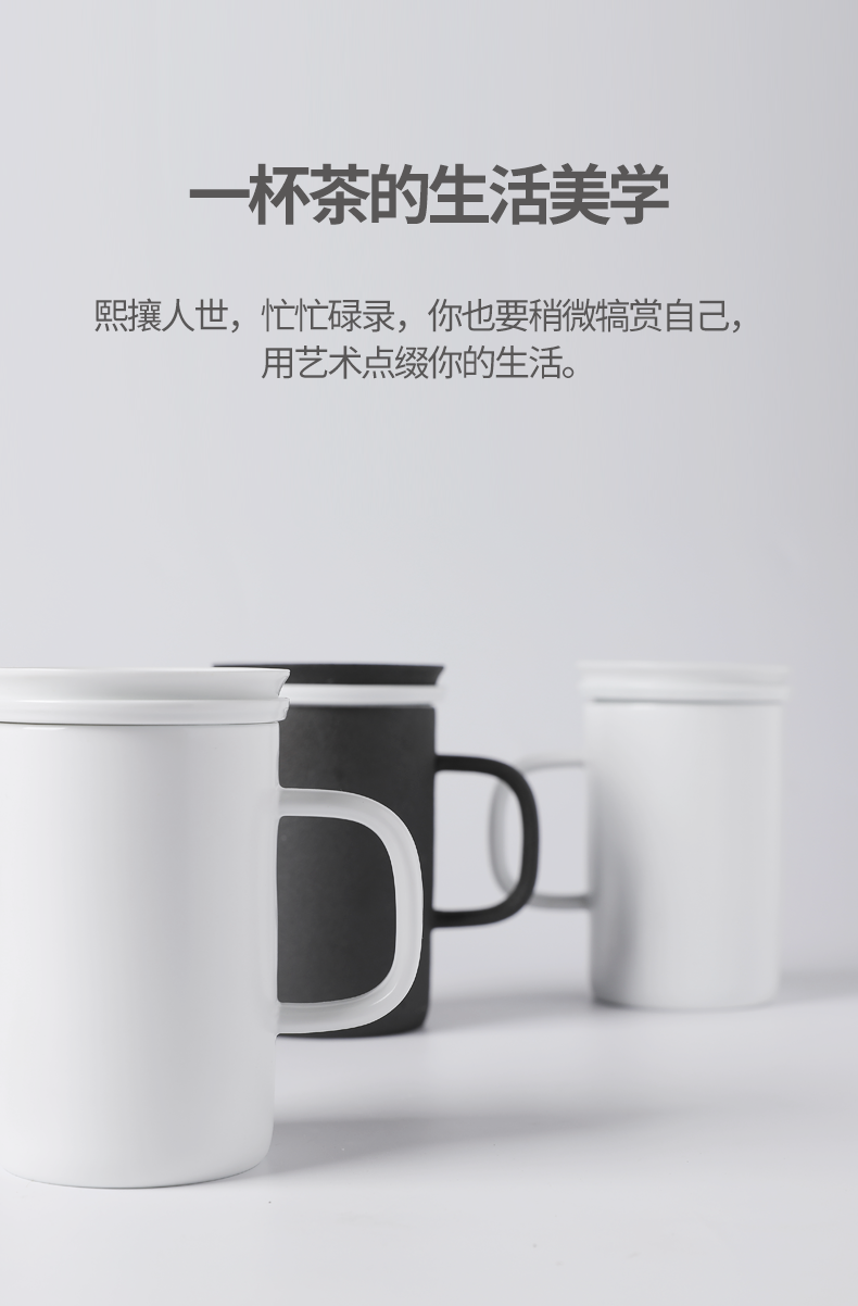 老夫子马克杯定制 带盖过滤杯垫茶杯家用陶瓷水杯 办公室泡茶杯子