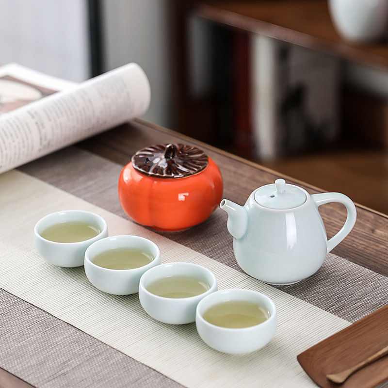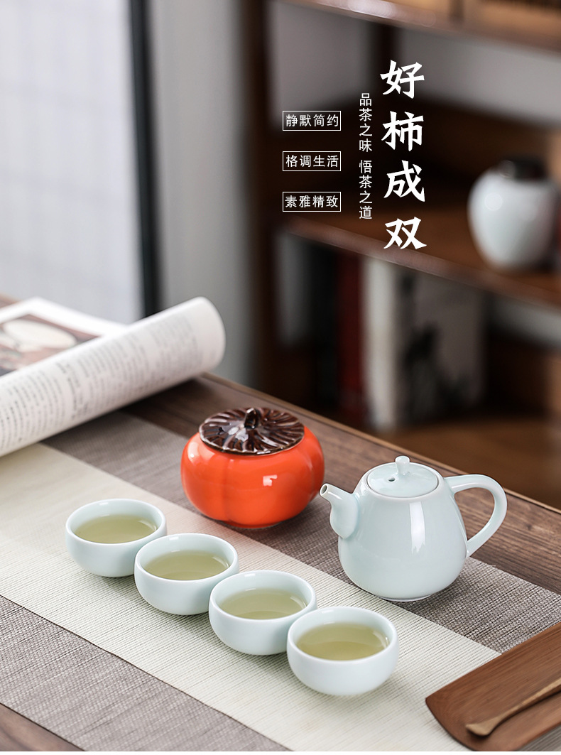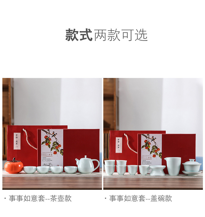 茶具套装房地产礼品 事事如意结婚新婚喜庆柿子茶杯茶壶创意礼品
