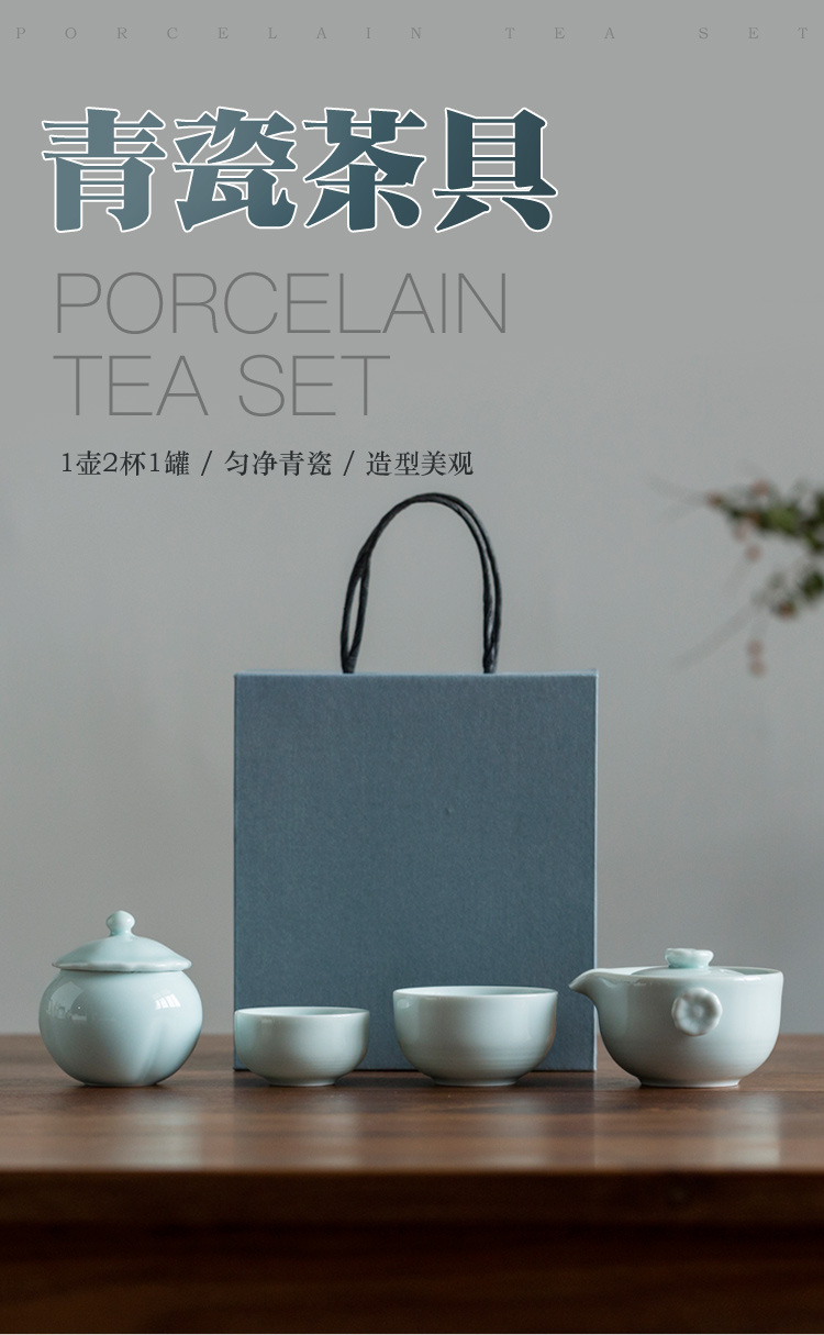 方然青瓷功夫茶具套装 便携式旅行包简约快客杯泡茶器定制批发