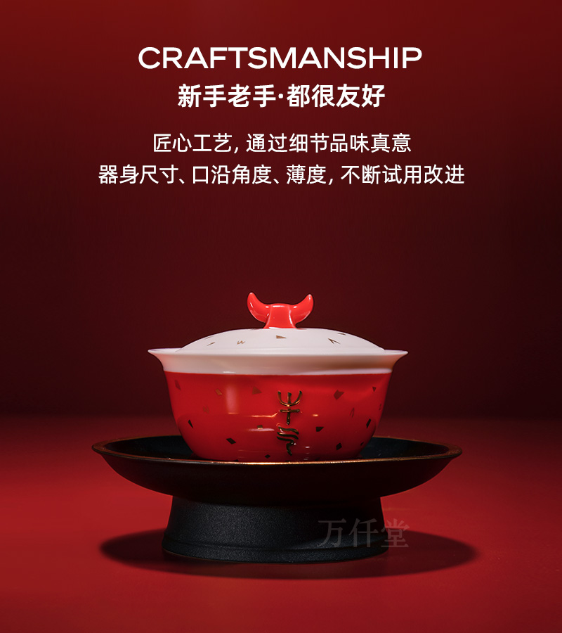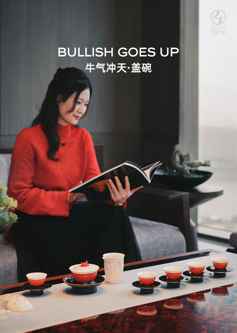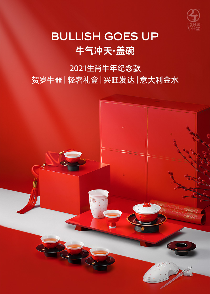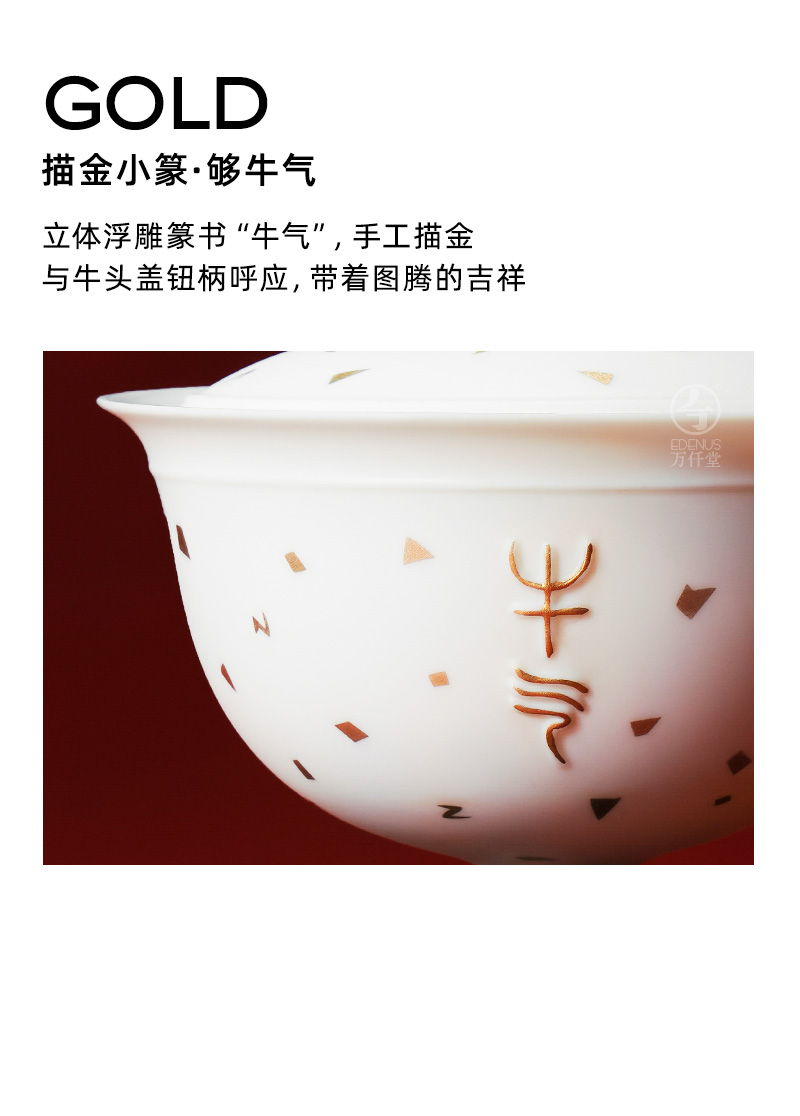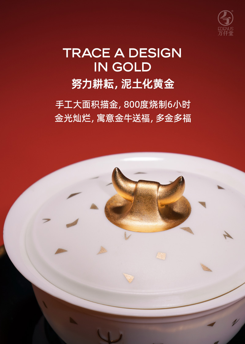 万仟堂Edenus茶具套装 牛年春节礼盒套装 功夫茶具牛年生肖礼盒盖碗5人用整套茶具牛气冲天