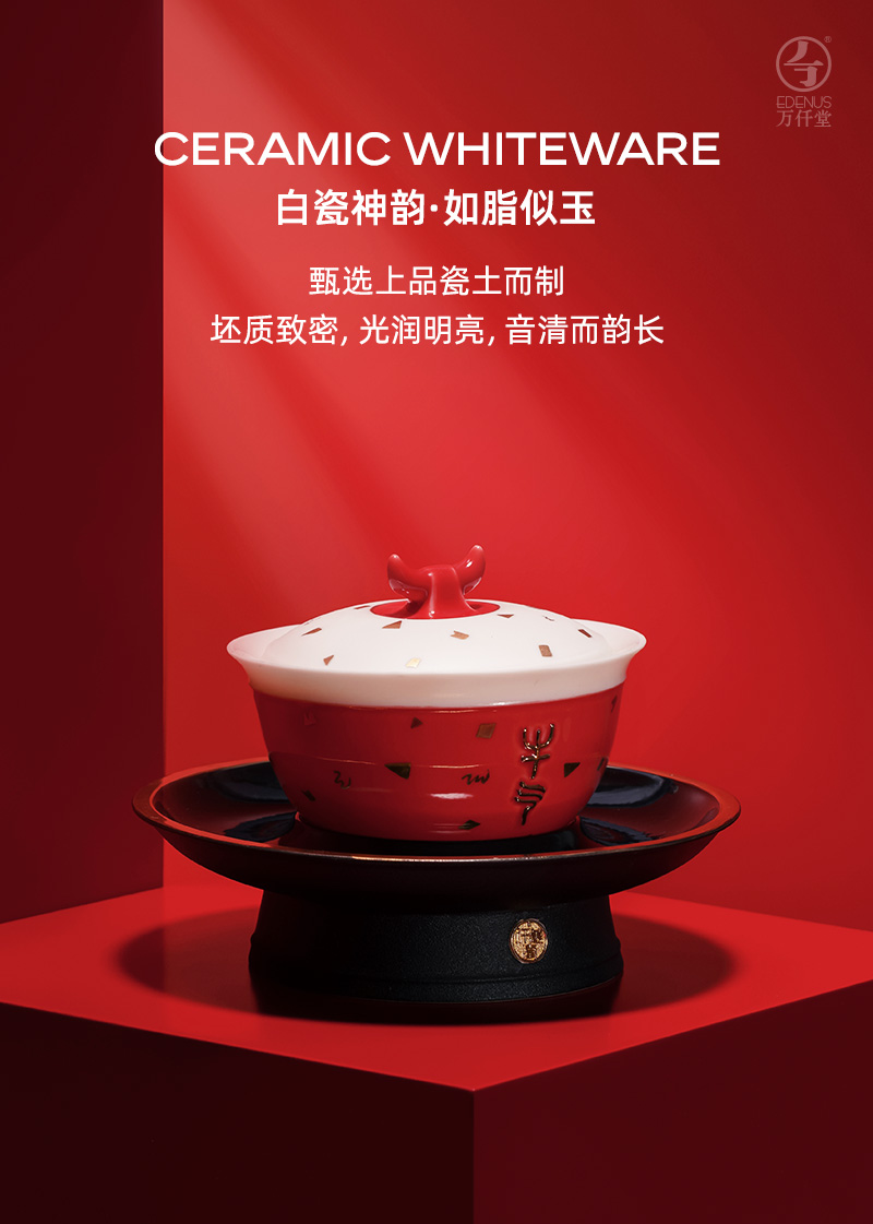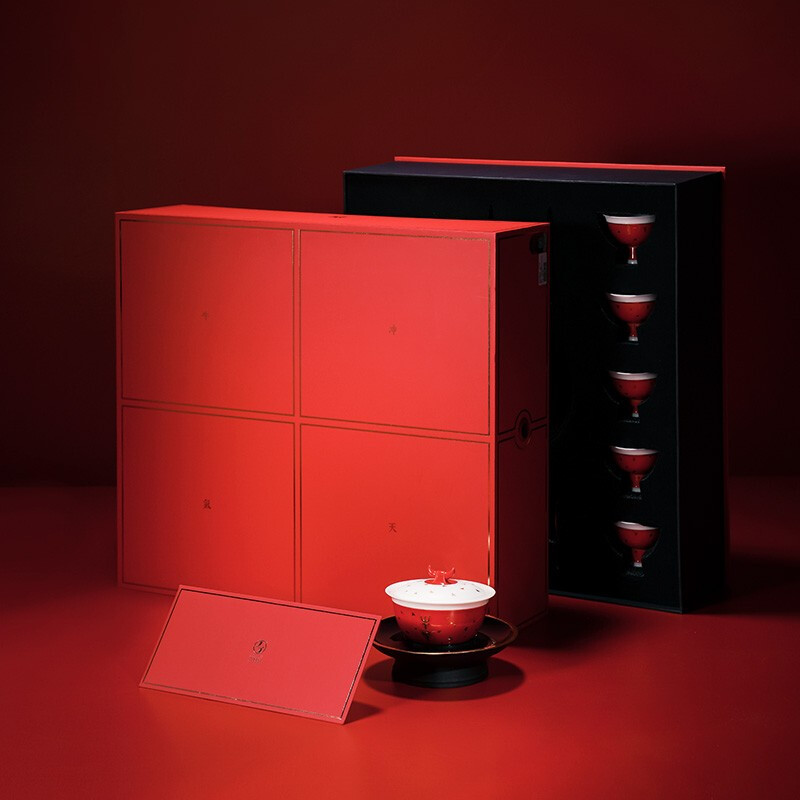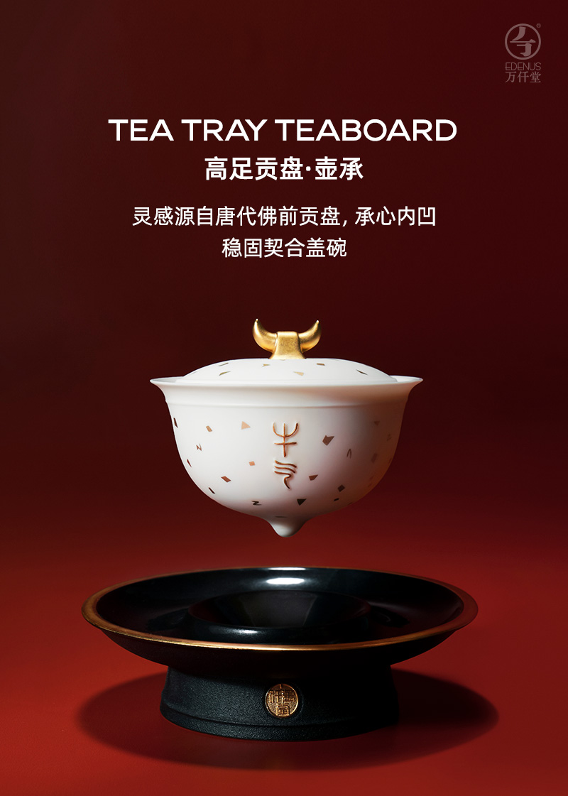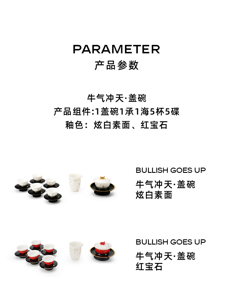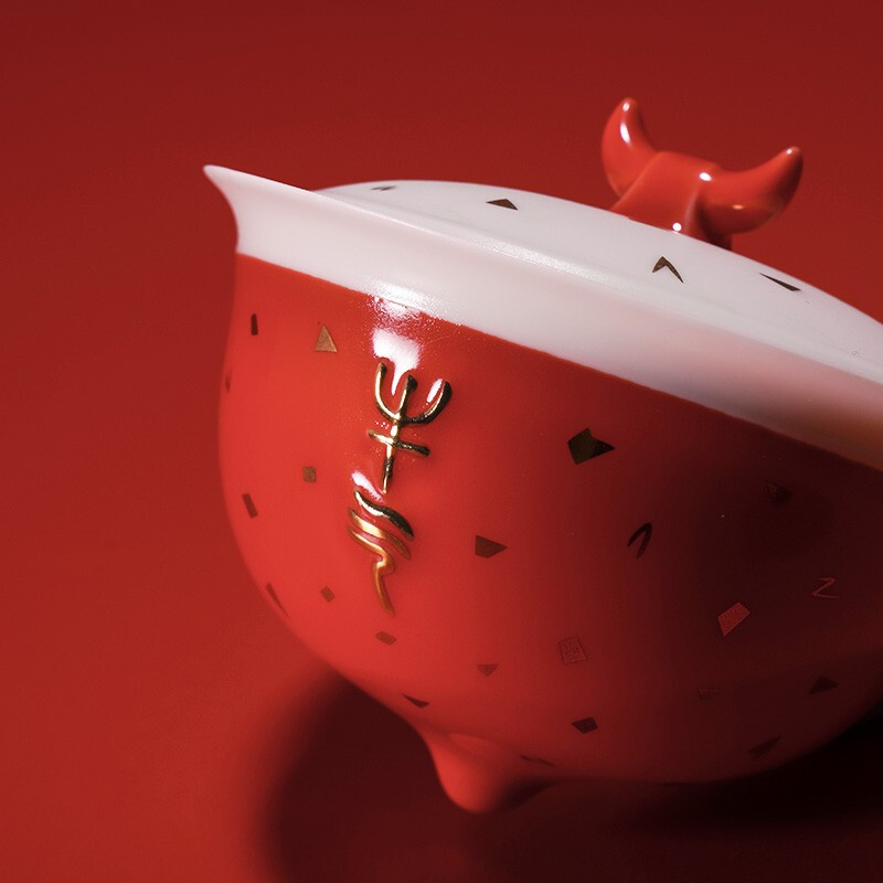 万仟堂Edenus茶具套装 牛年春节礼盒套装 功夫茶具牛年生肖礼盒盖碗5人用整套茶具牛气冲天